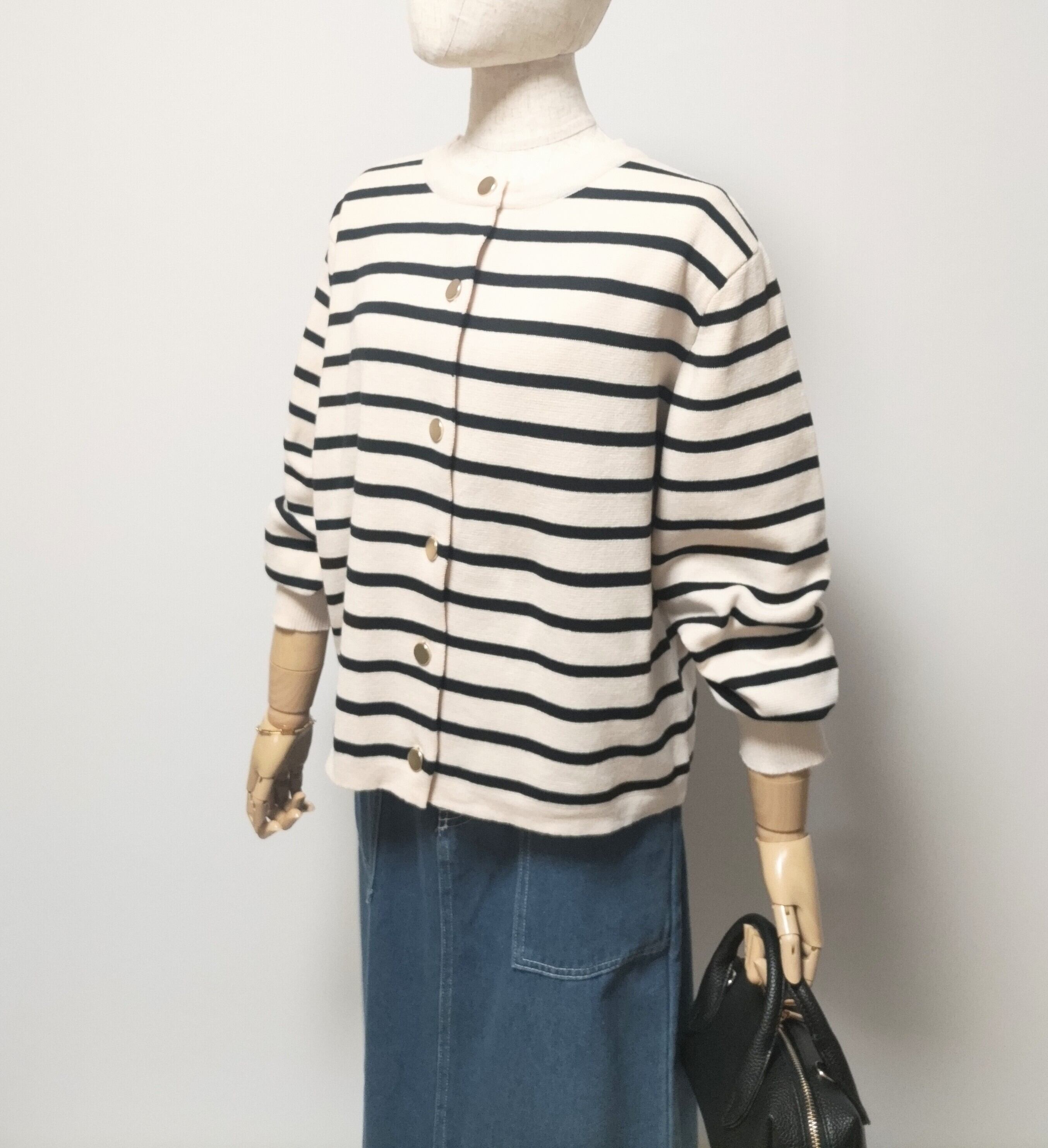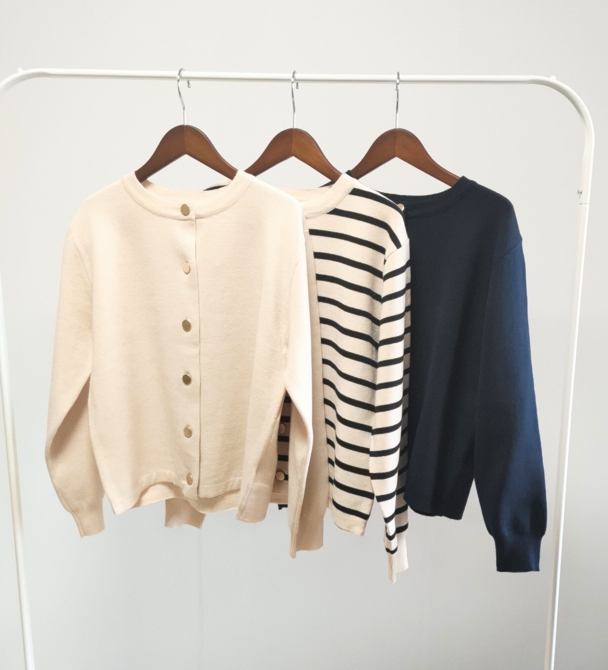 ゴールドボタンがアクセント!ミラノリブカーディガン。