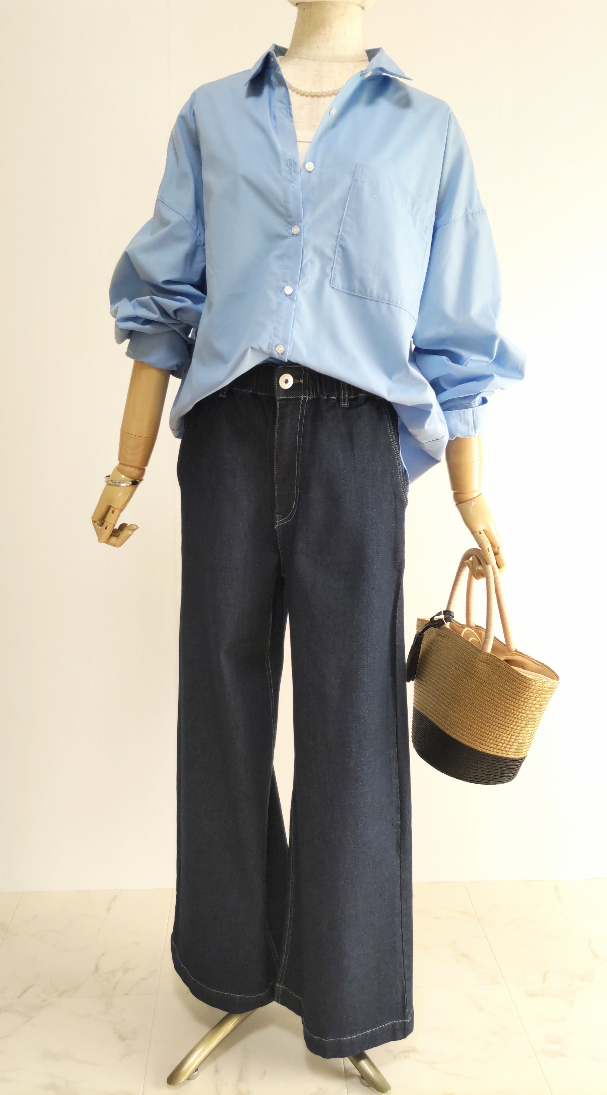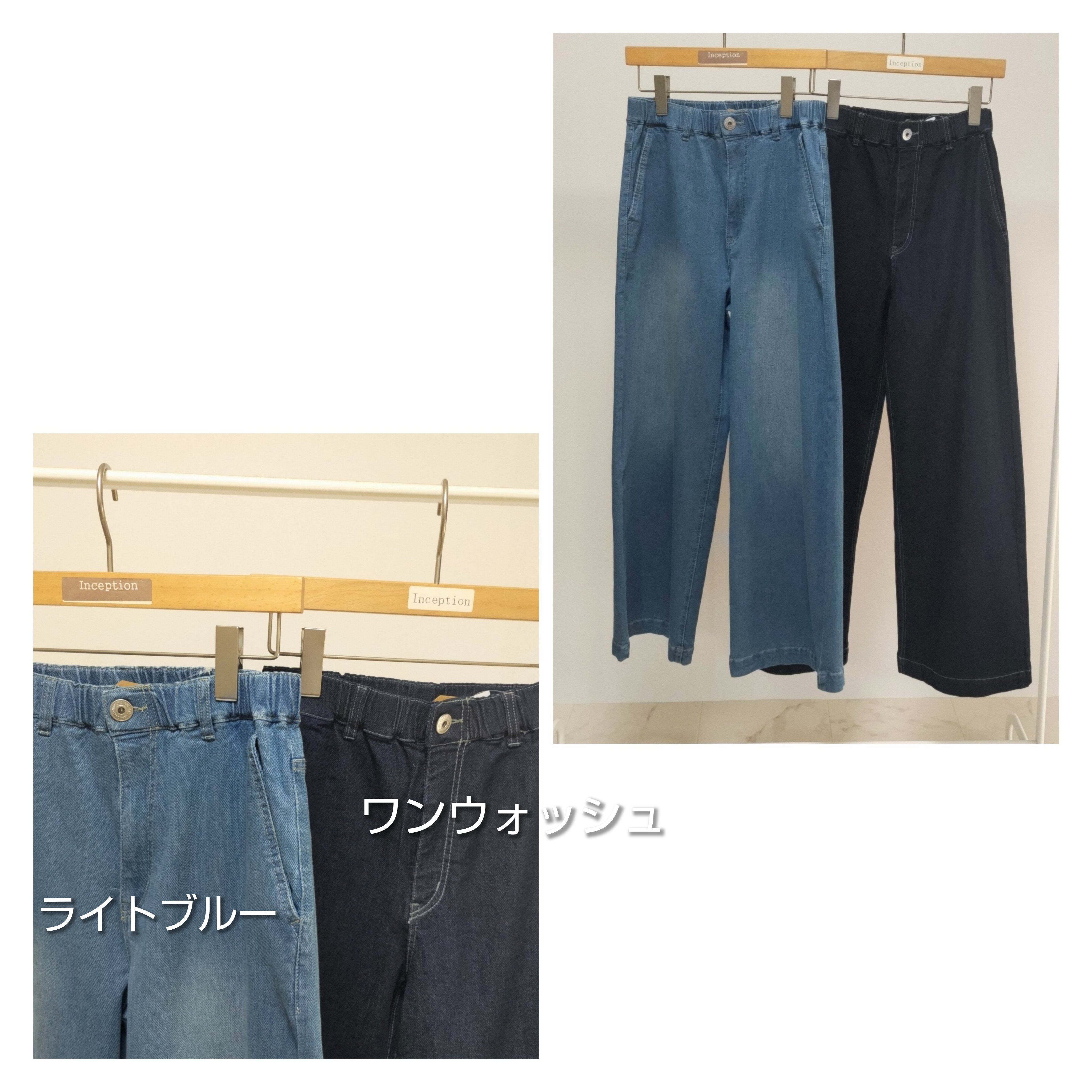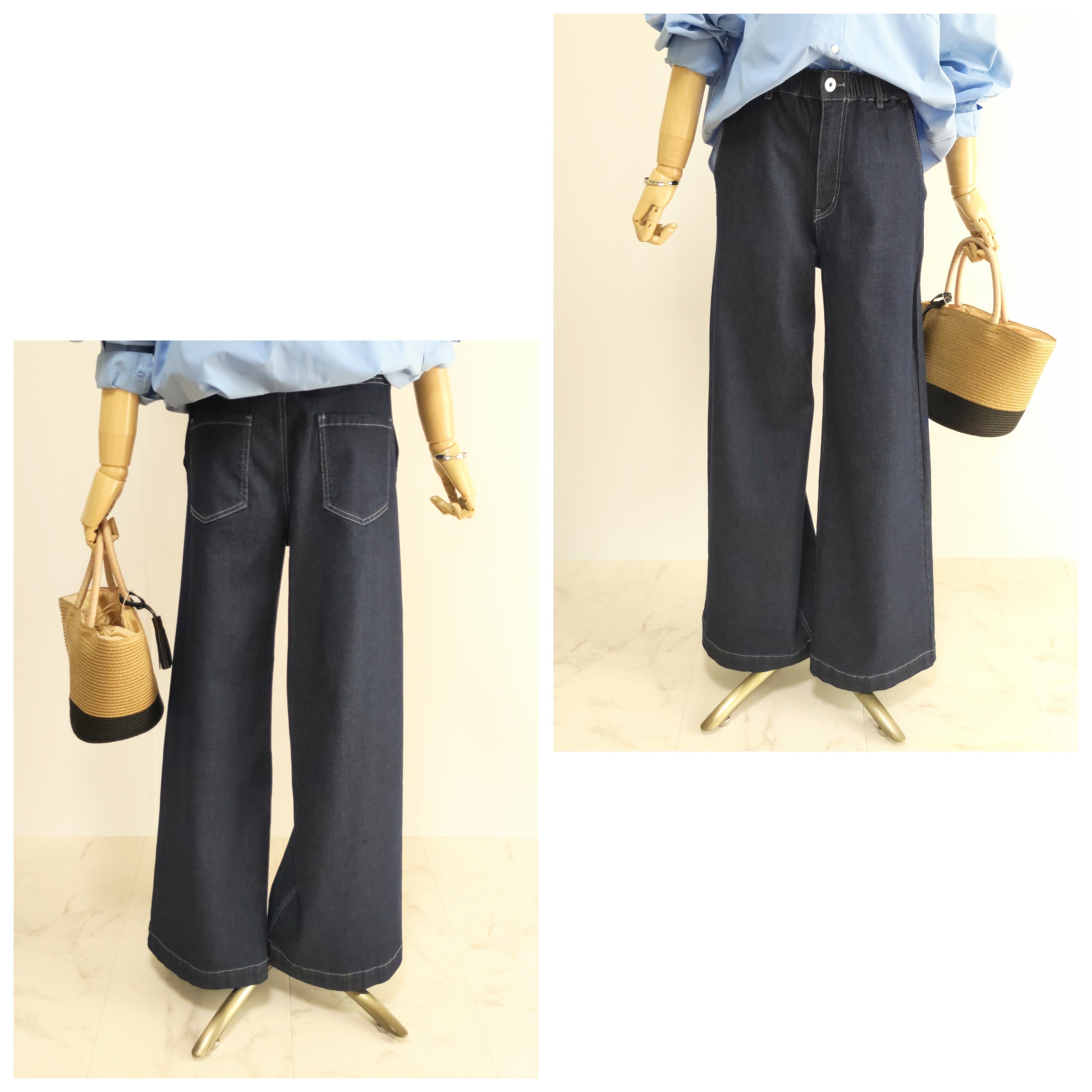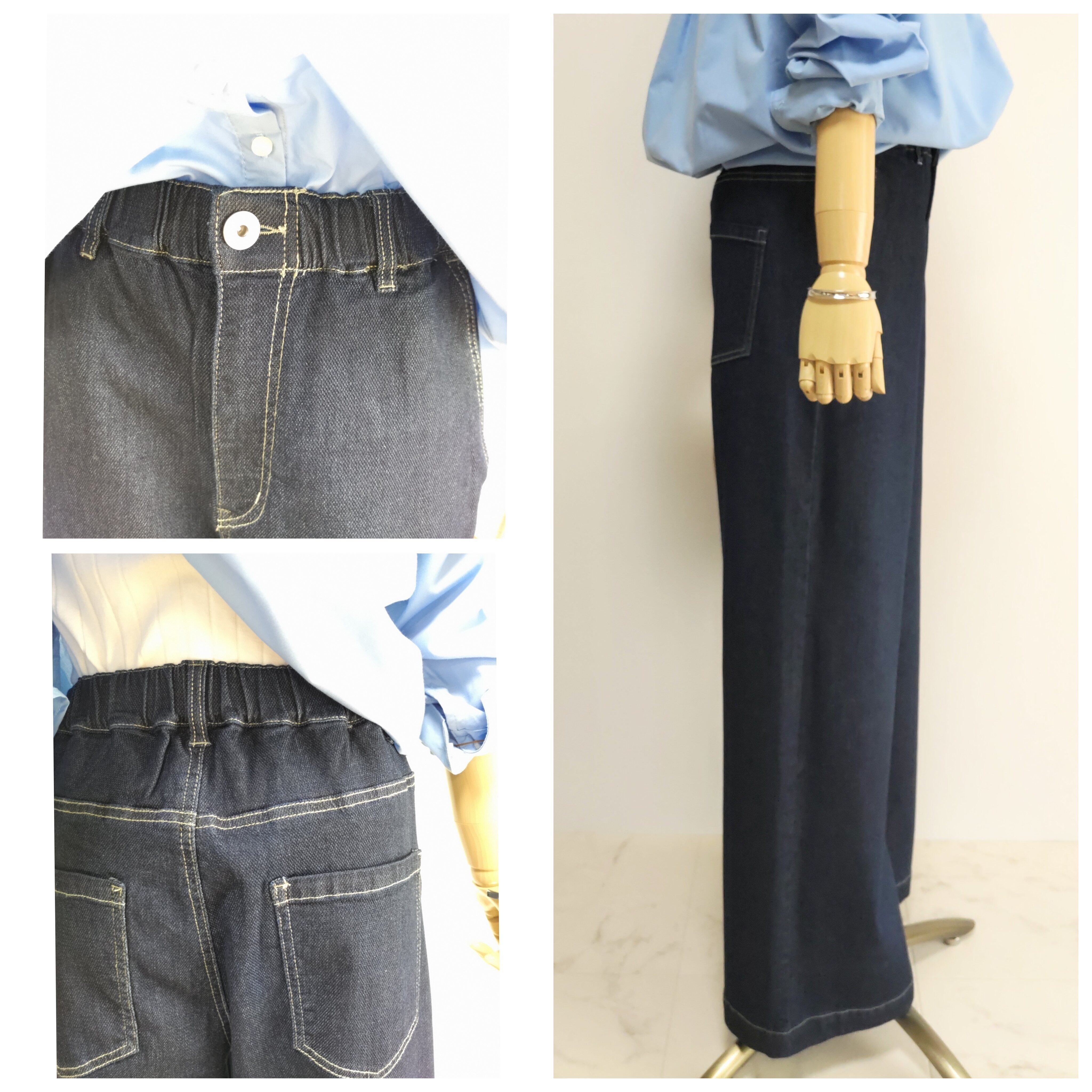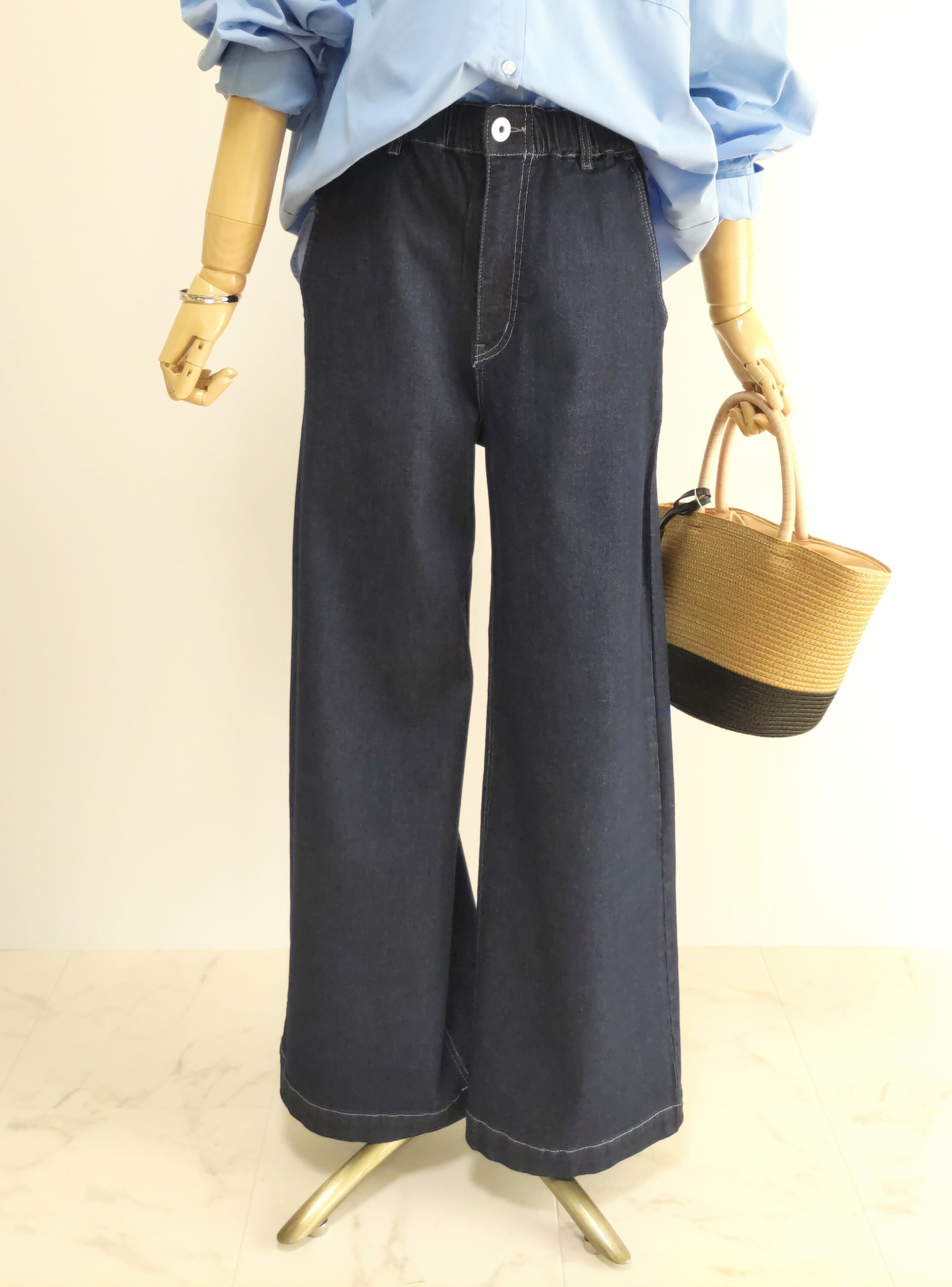 シルエットが綺麗なデニムワイドストレートパンツ。