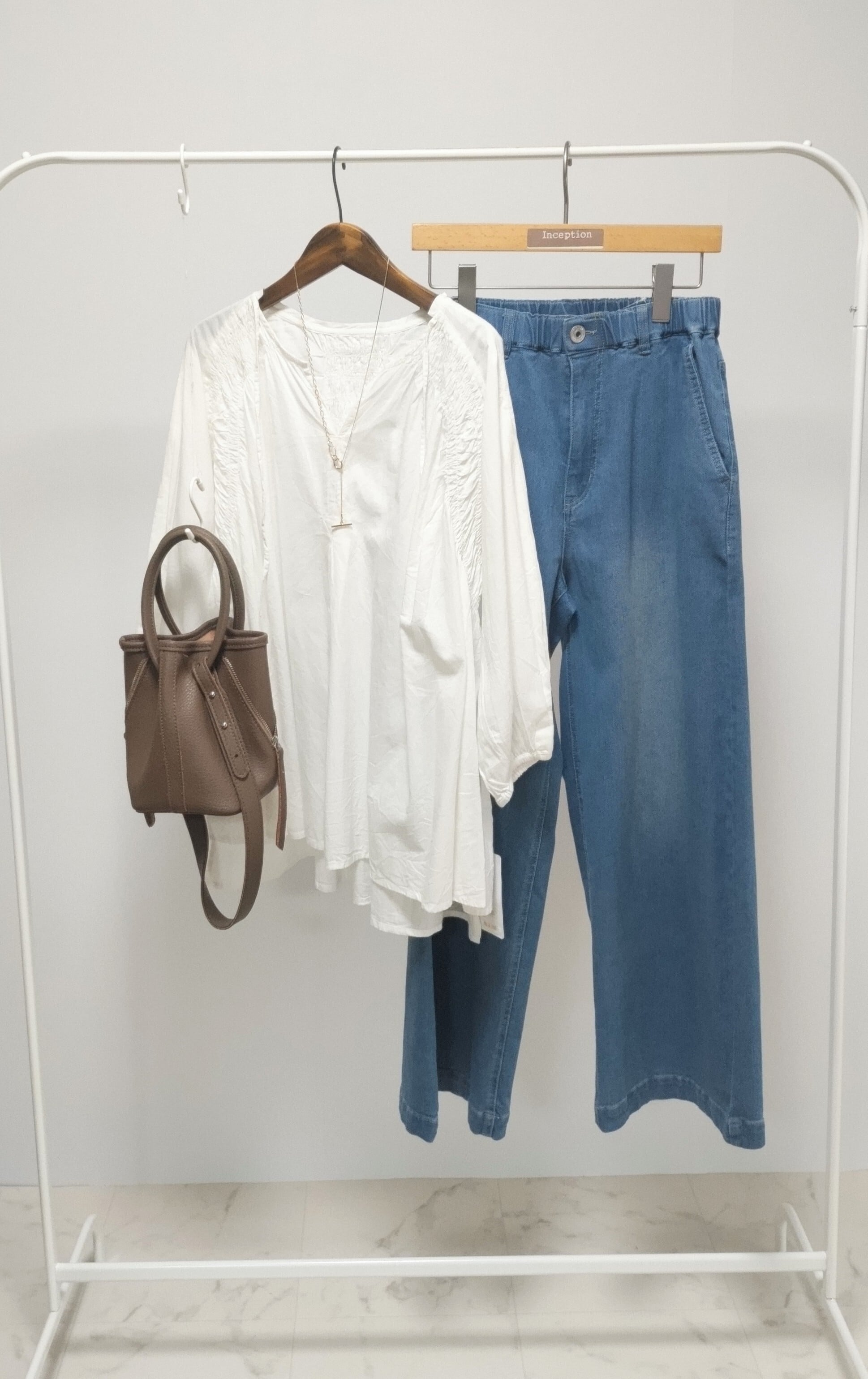 ワイドシルエットで太もものラインを拾わず