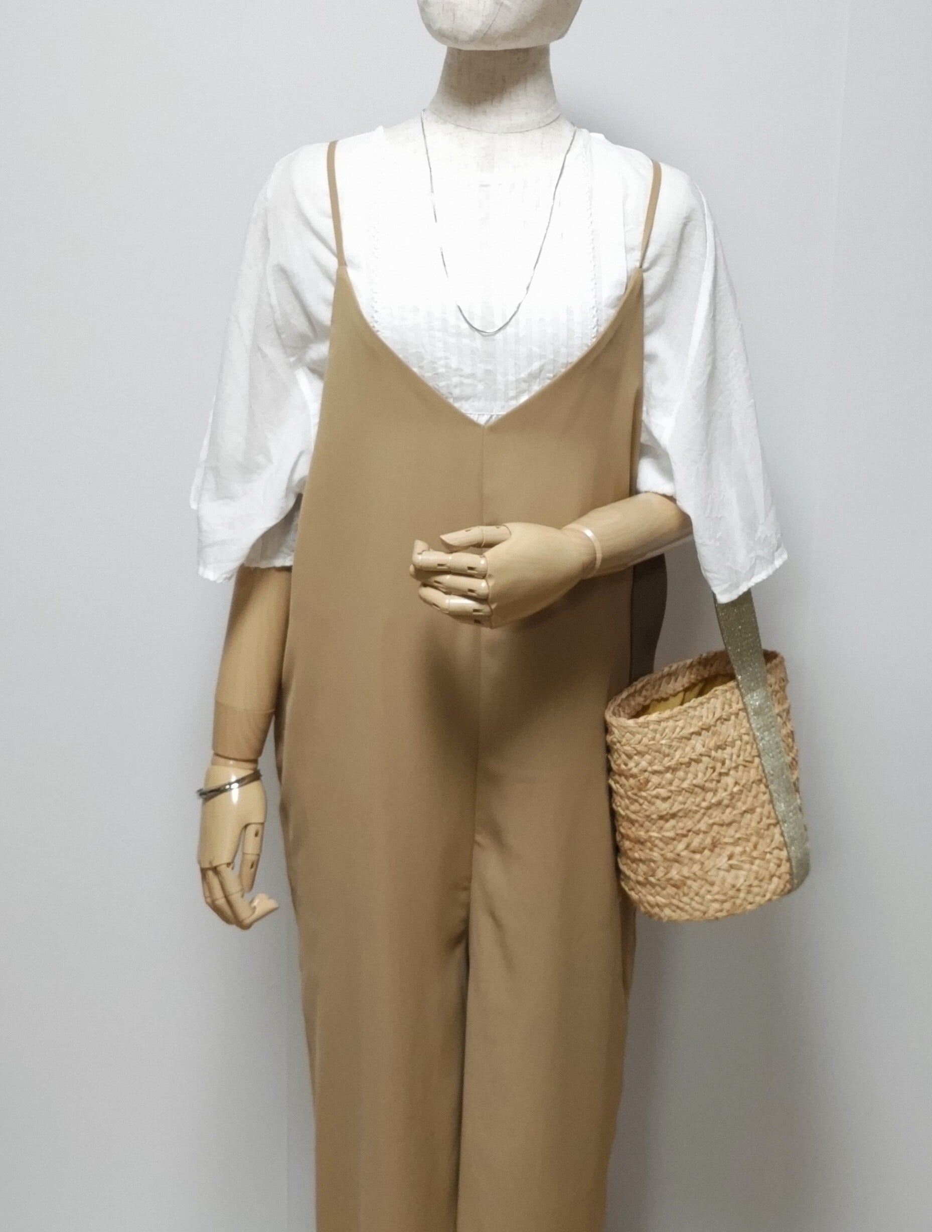 春夏はTシャツやノースリーブ、秋冬はニットやカットソーと合わせて季節を問わずに楽しめるオススメアイテム。