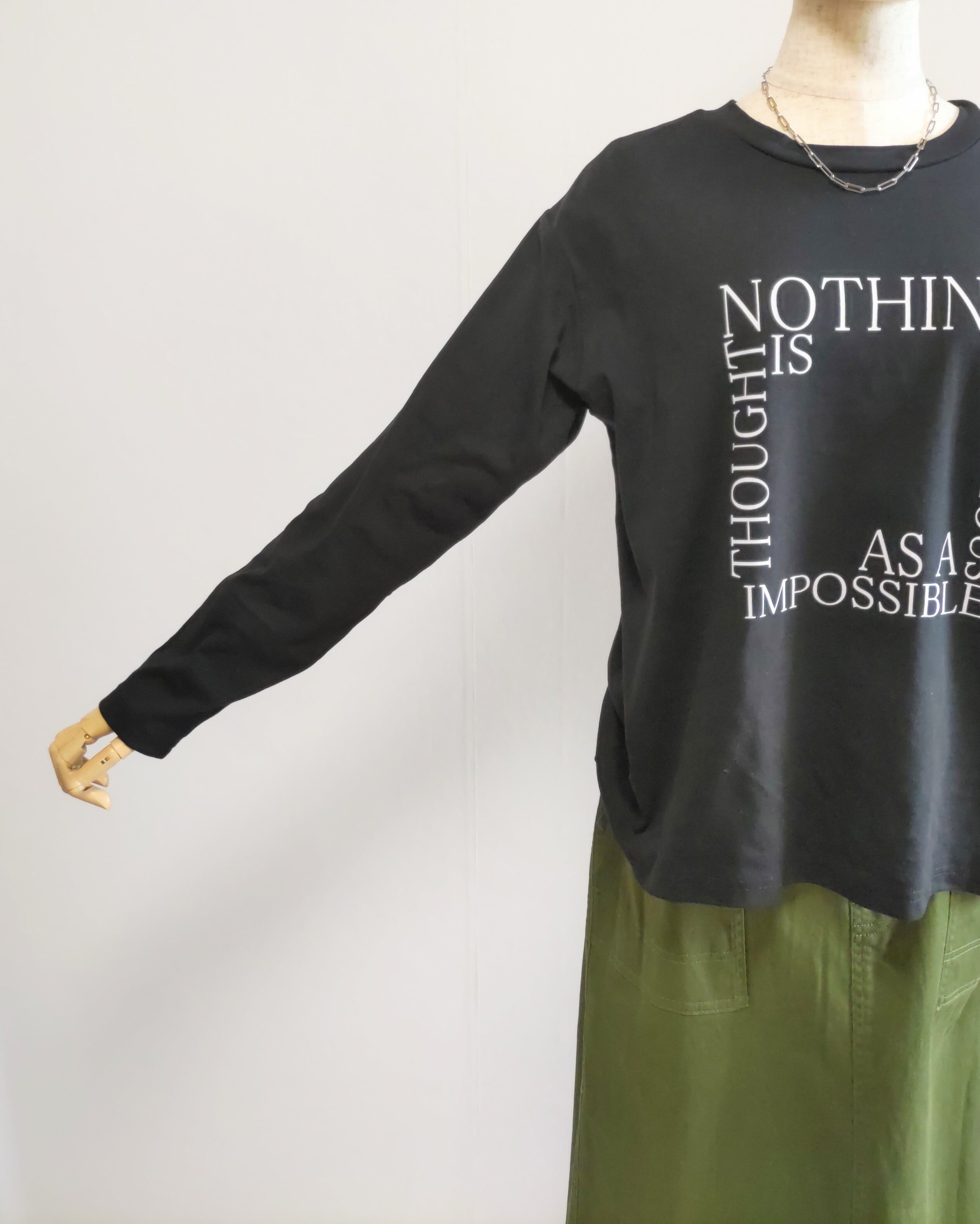 伸縮性があり大きすぎず程よいサイズ感で一枚着はもちろん、インナーにも使いやすところが人気のポイントです。