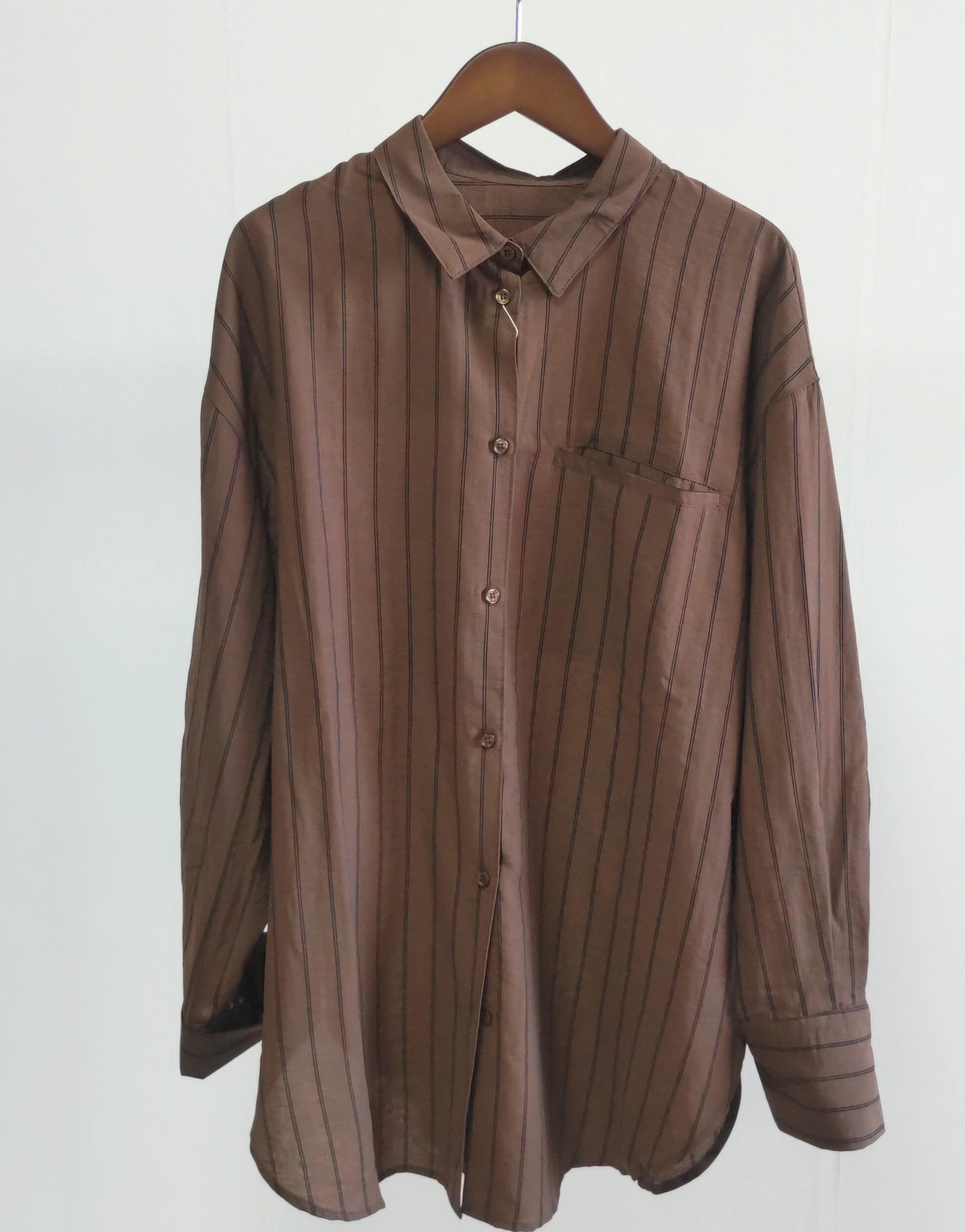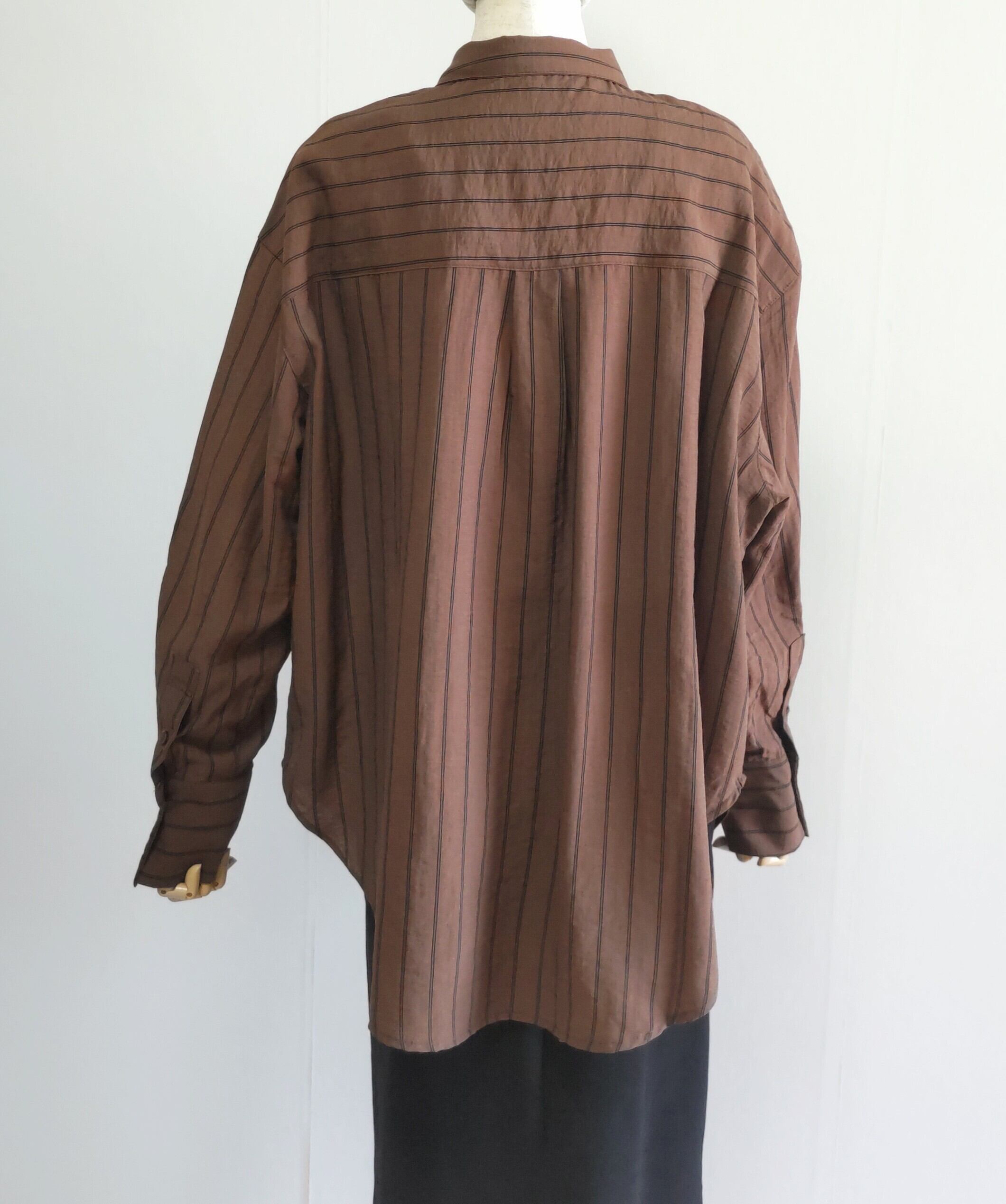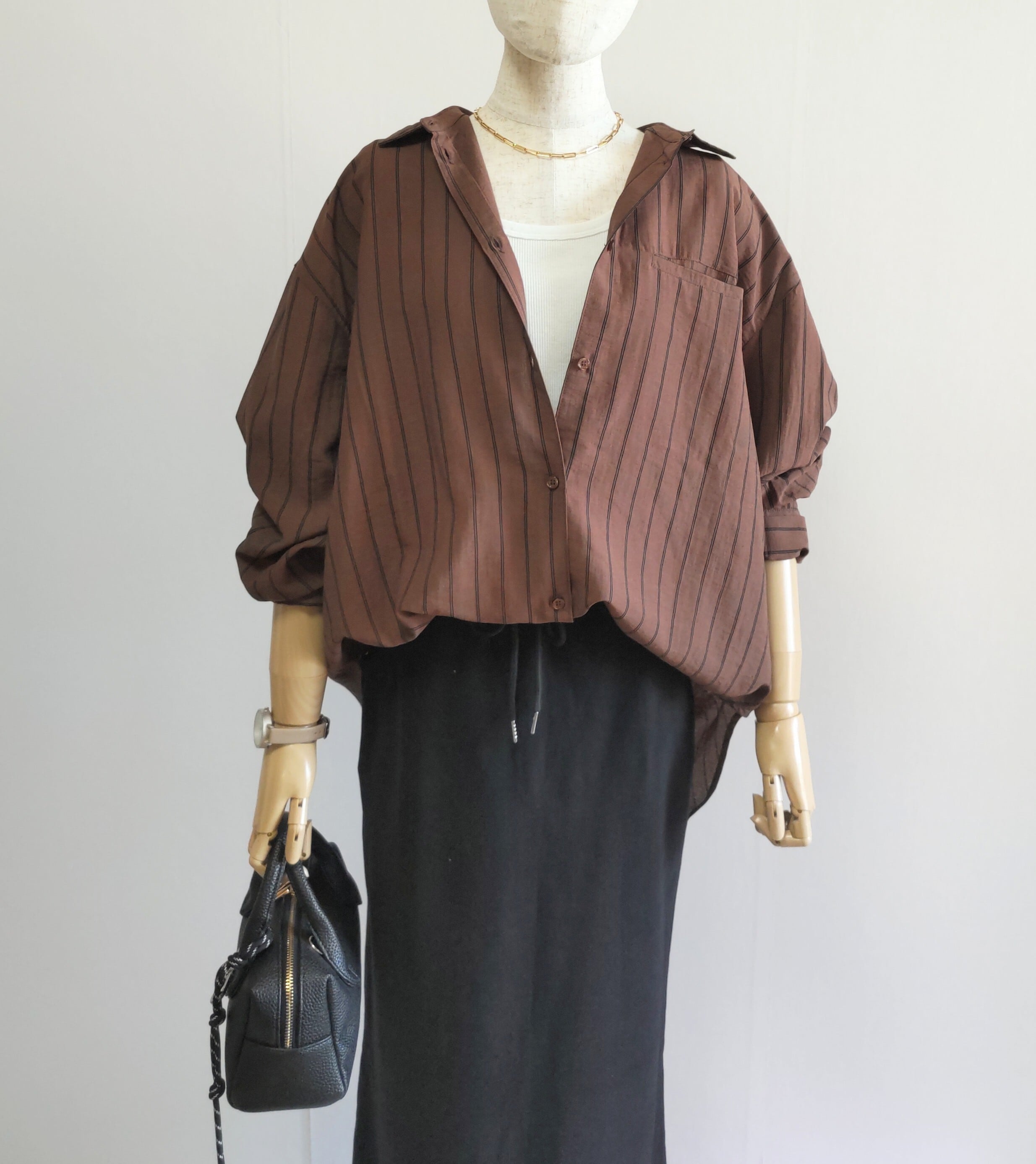 少し長めの丈感がポイント、トップスとしても羽織りとしても使いまわしのきく万能アイテム。