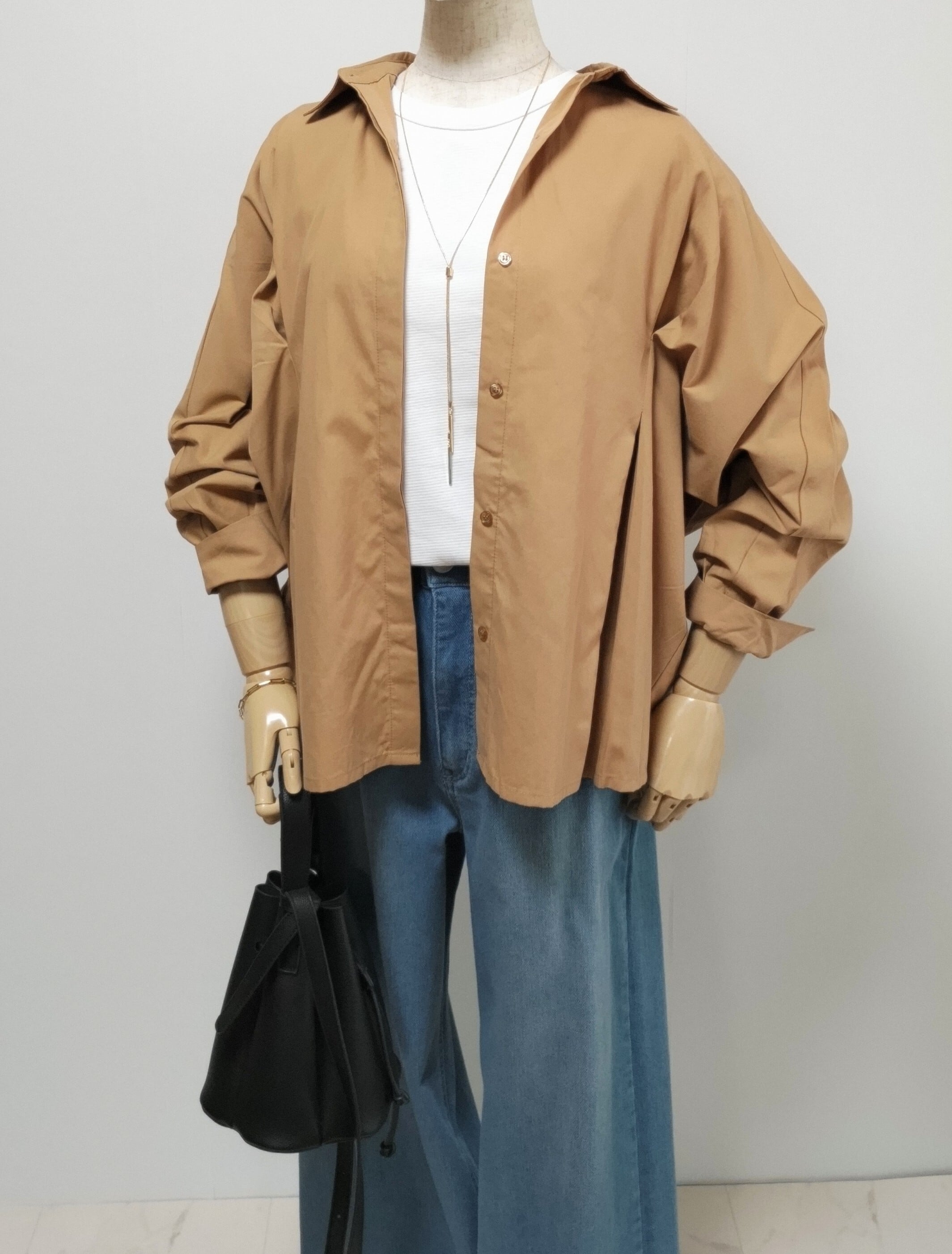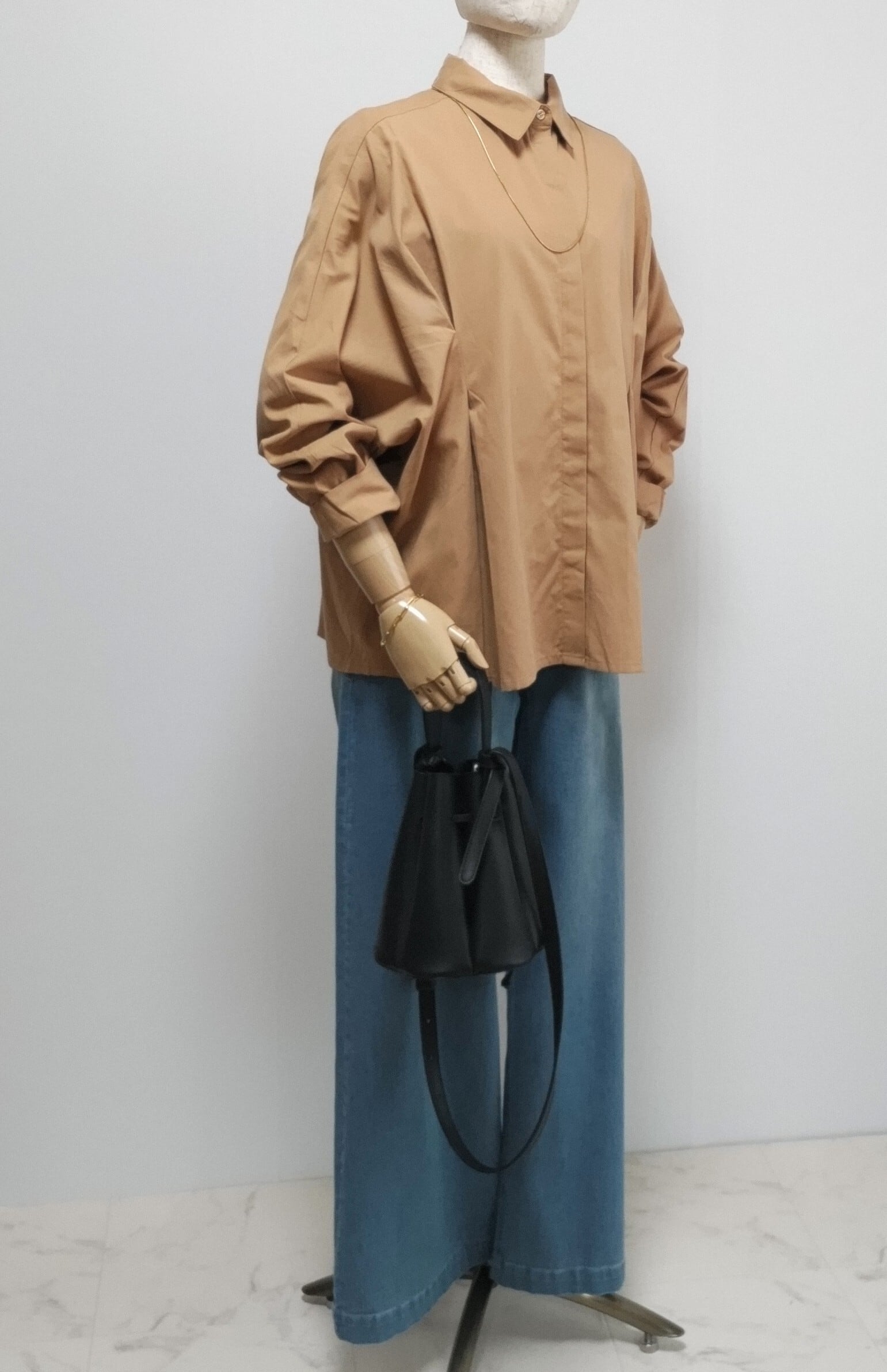 袖はドルマン調のデザインで、身幅は程よくゆとりのあるサイズ感です。