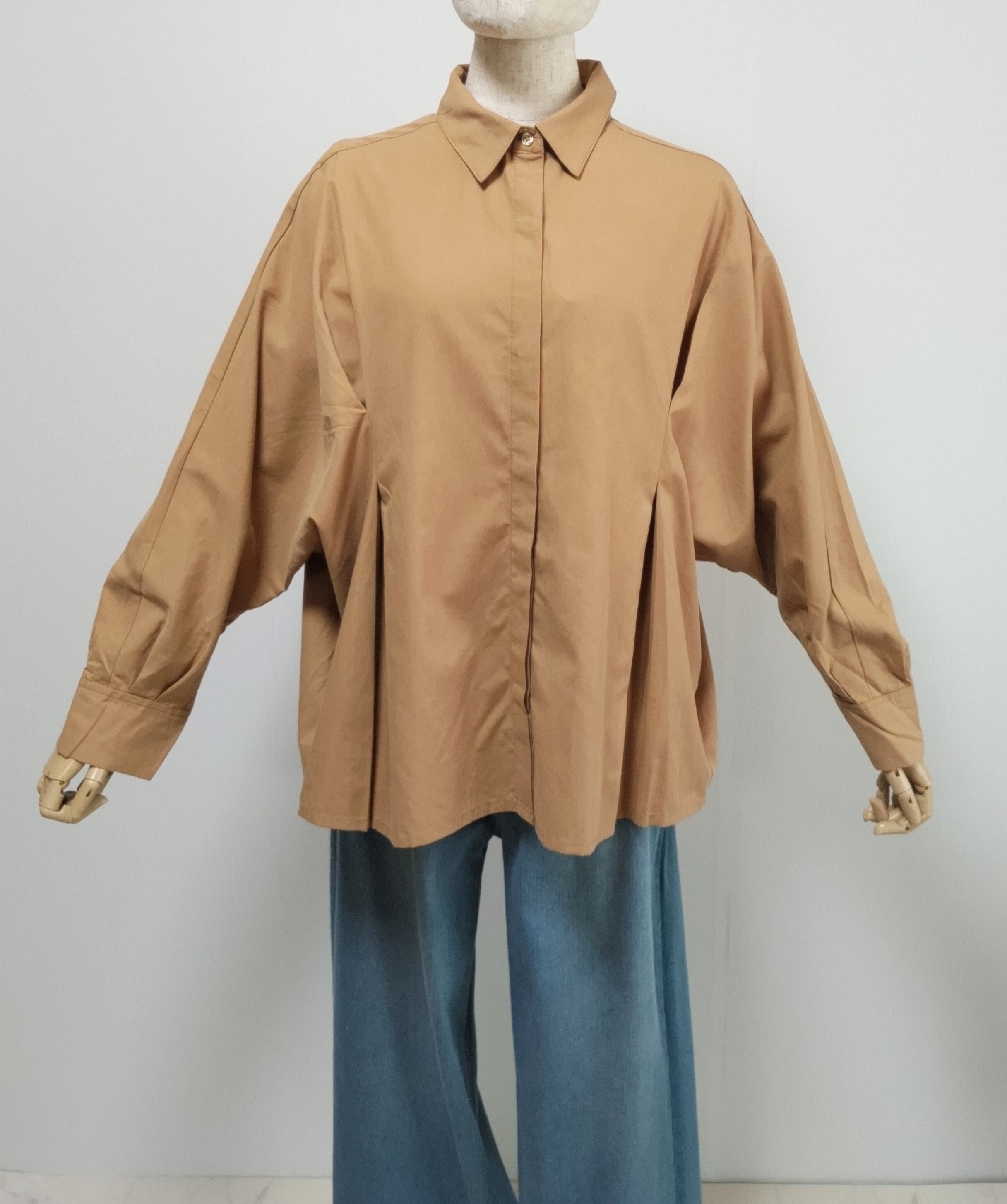 身頃に施されたタックデザインが、定番ボトムを合わせるだけでコーデが決まるこなれ感溢れるドルマンブラウス 。