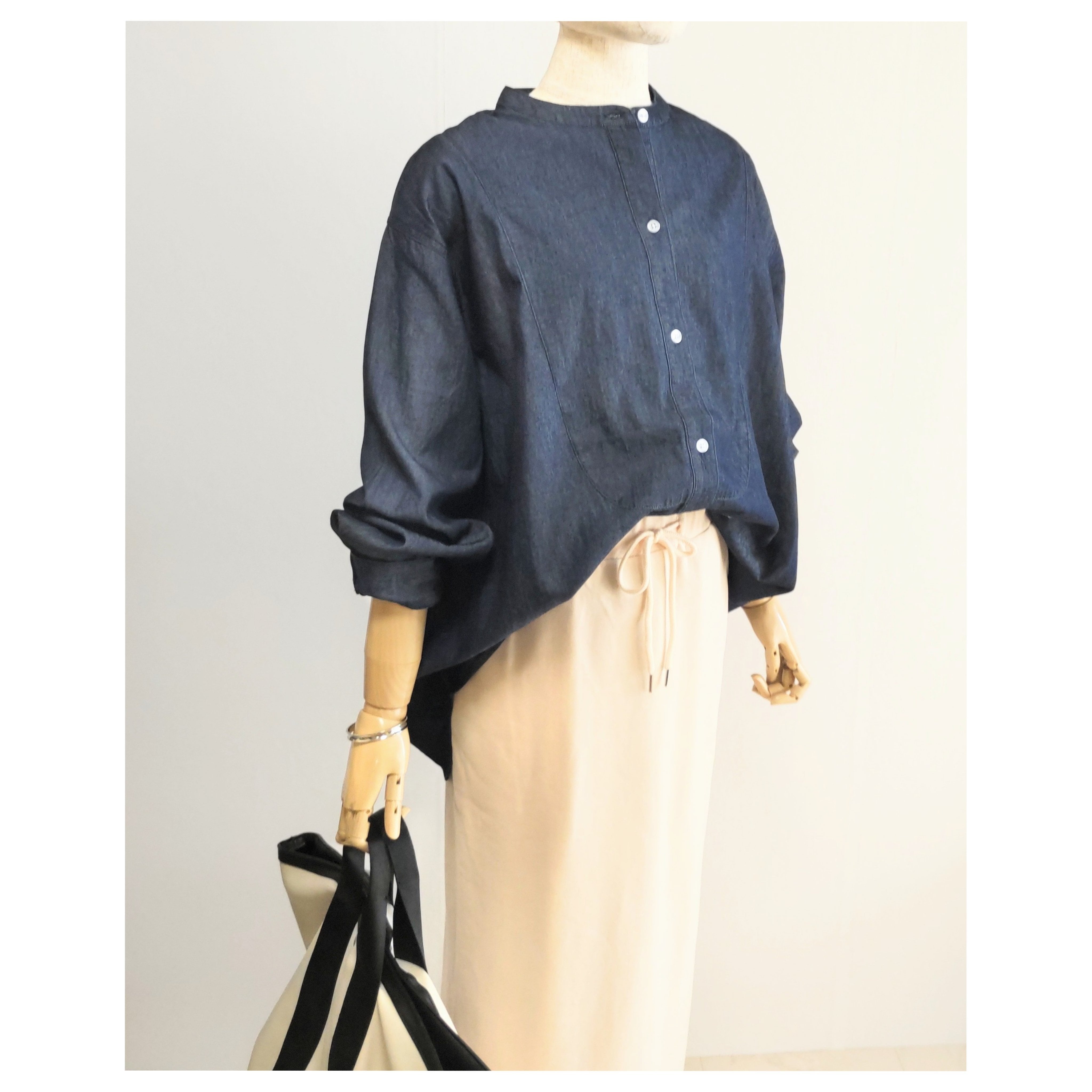 フロントのヨークディテールが着こなしのアクセントになるブラウス。