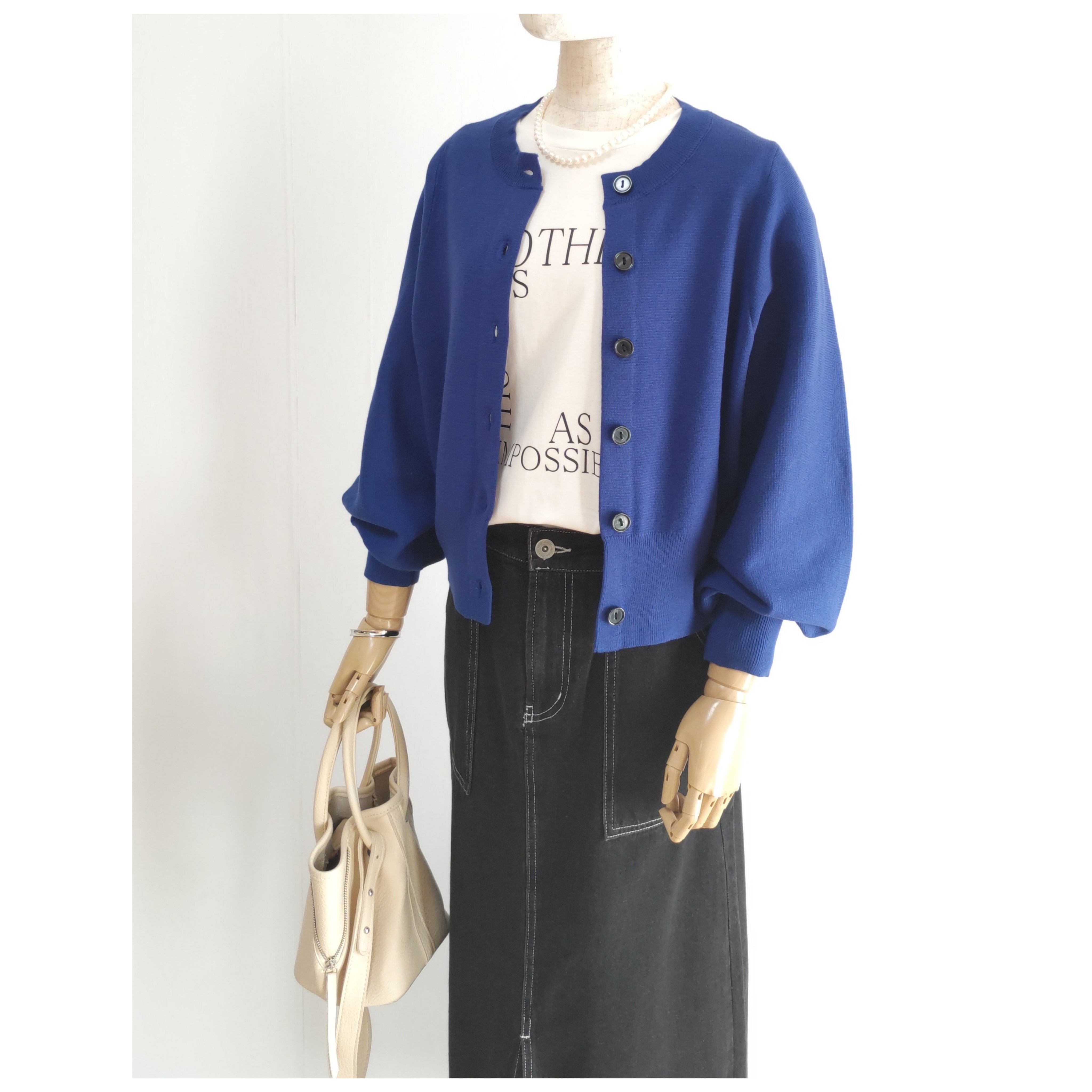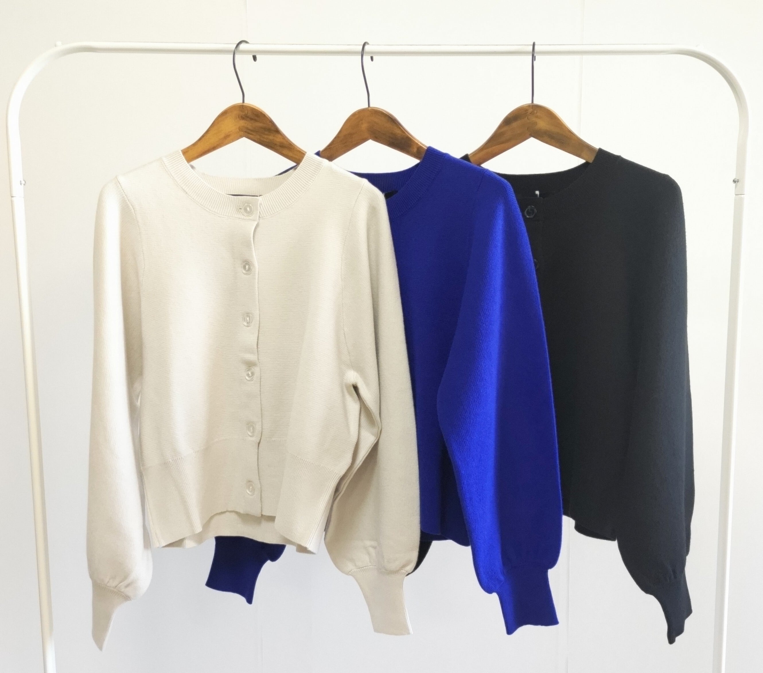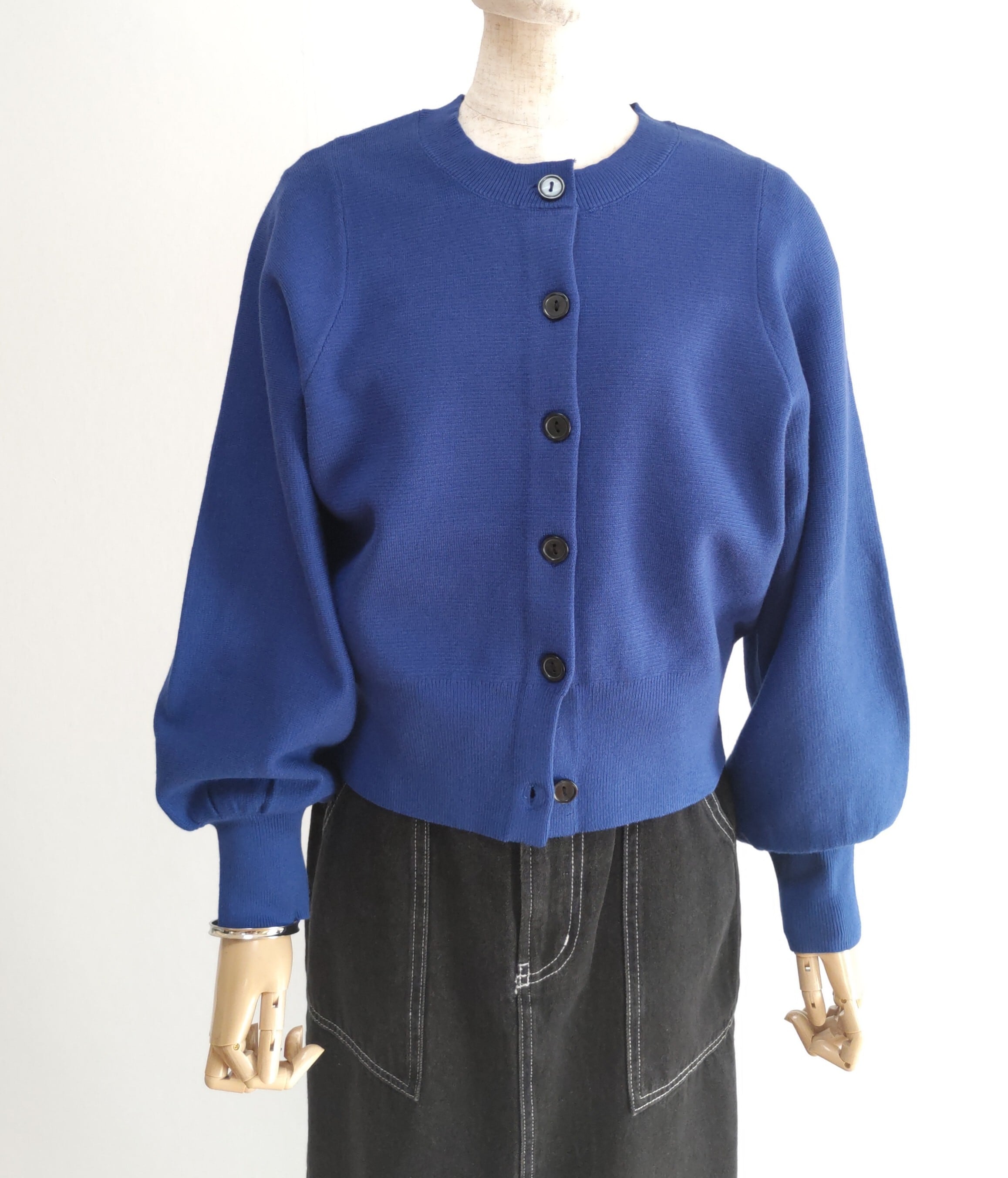 ややコンパクトなシルエットにボリューム感のあるスリーブが特徴のカーディガン。