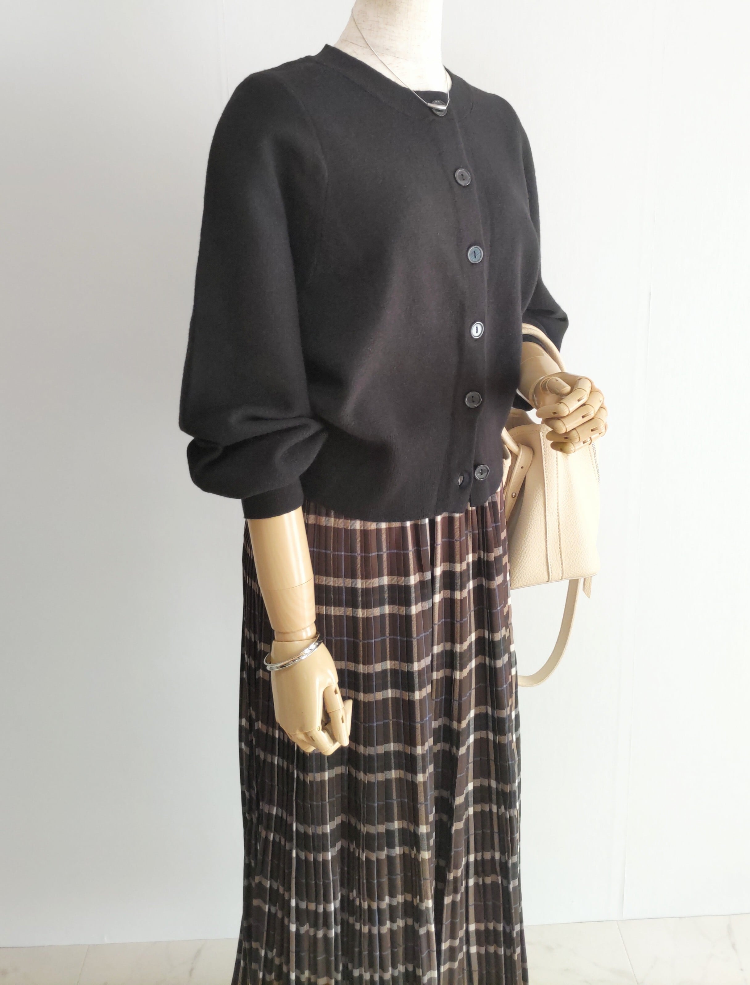 シンプルながらフェミニンでワンピースやスカートにも合わせやすい一枚です。