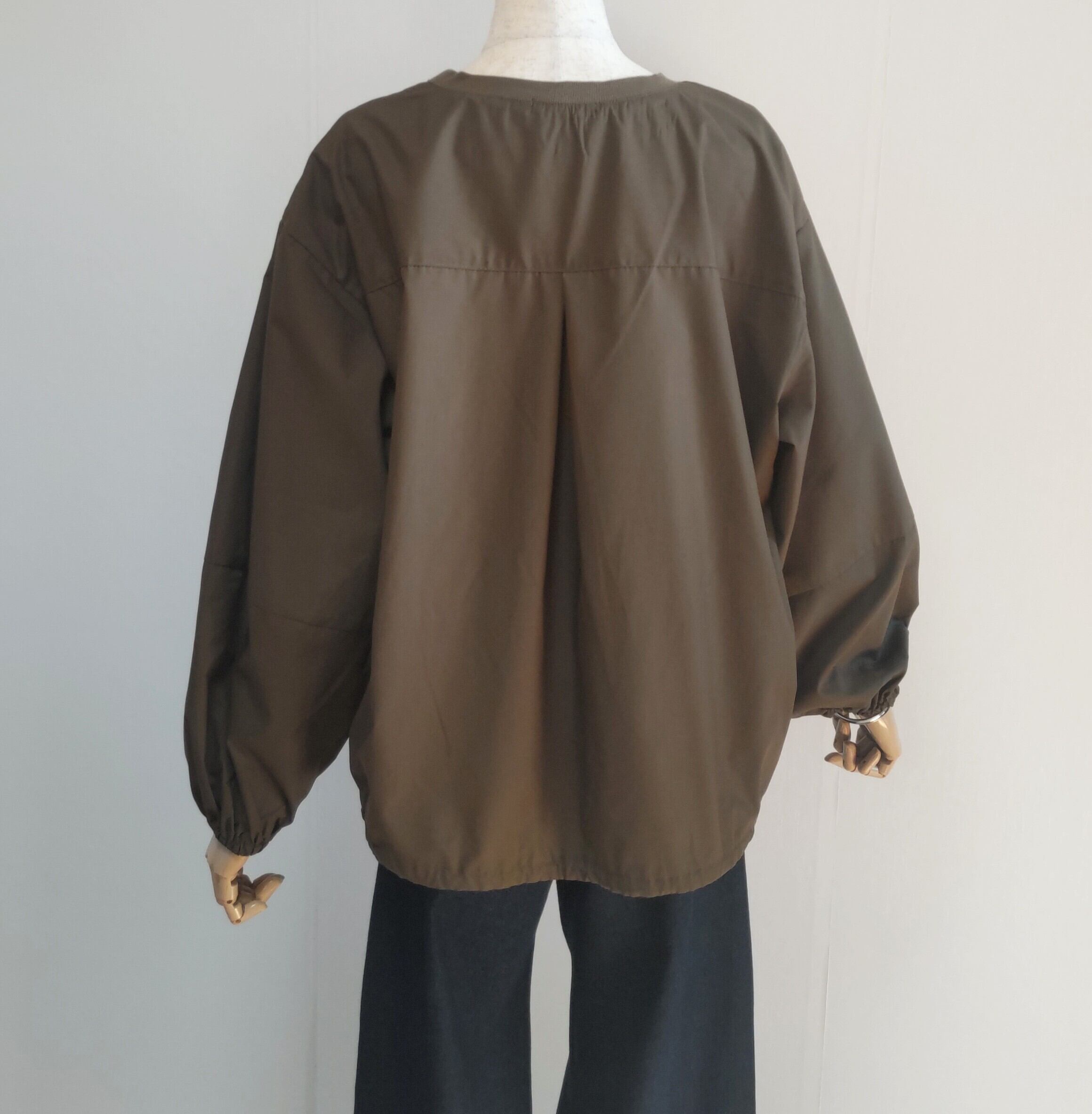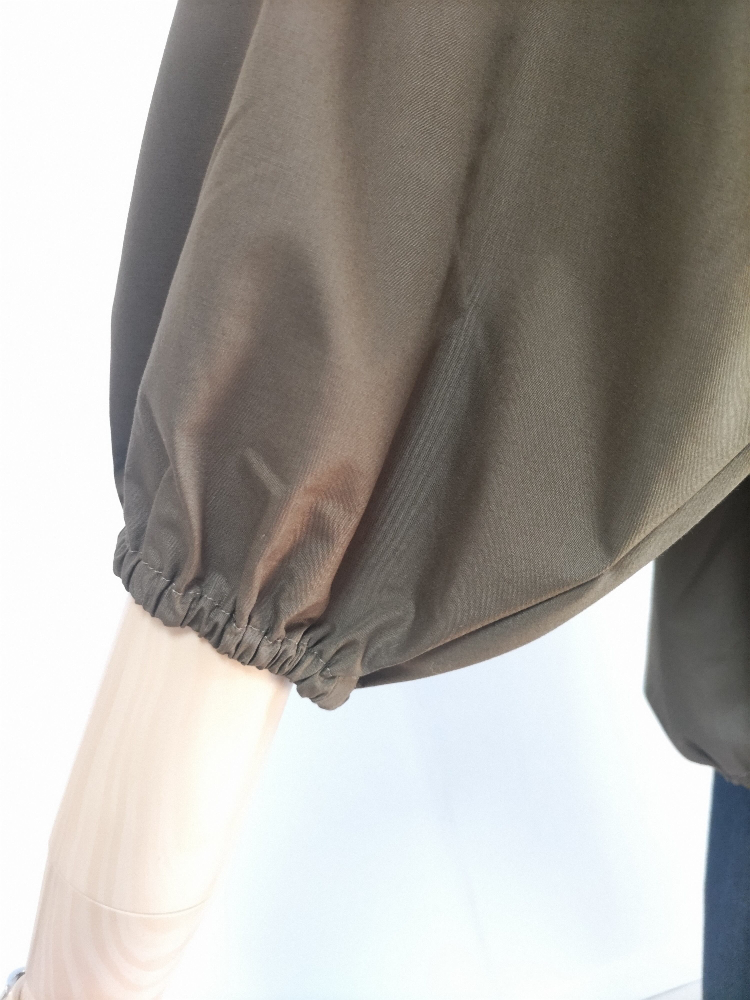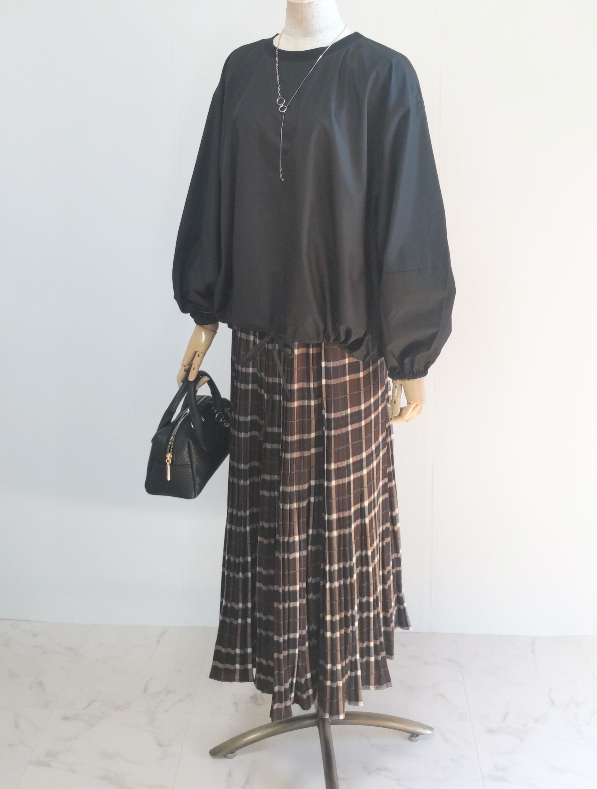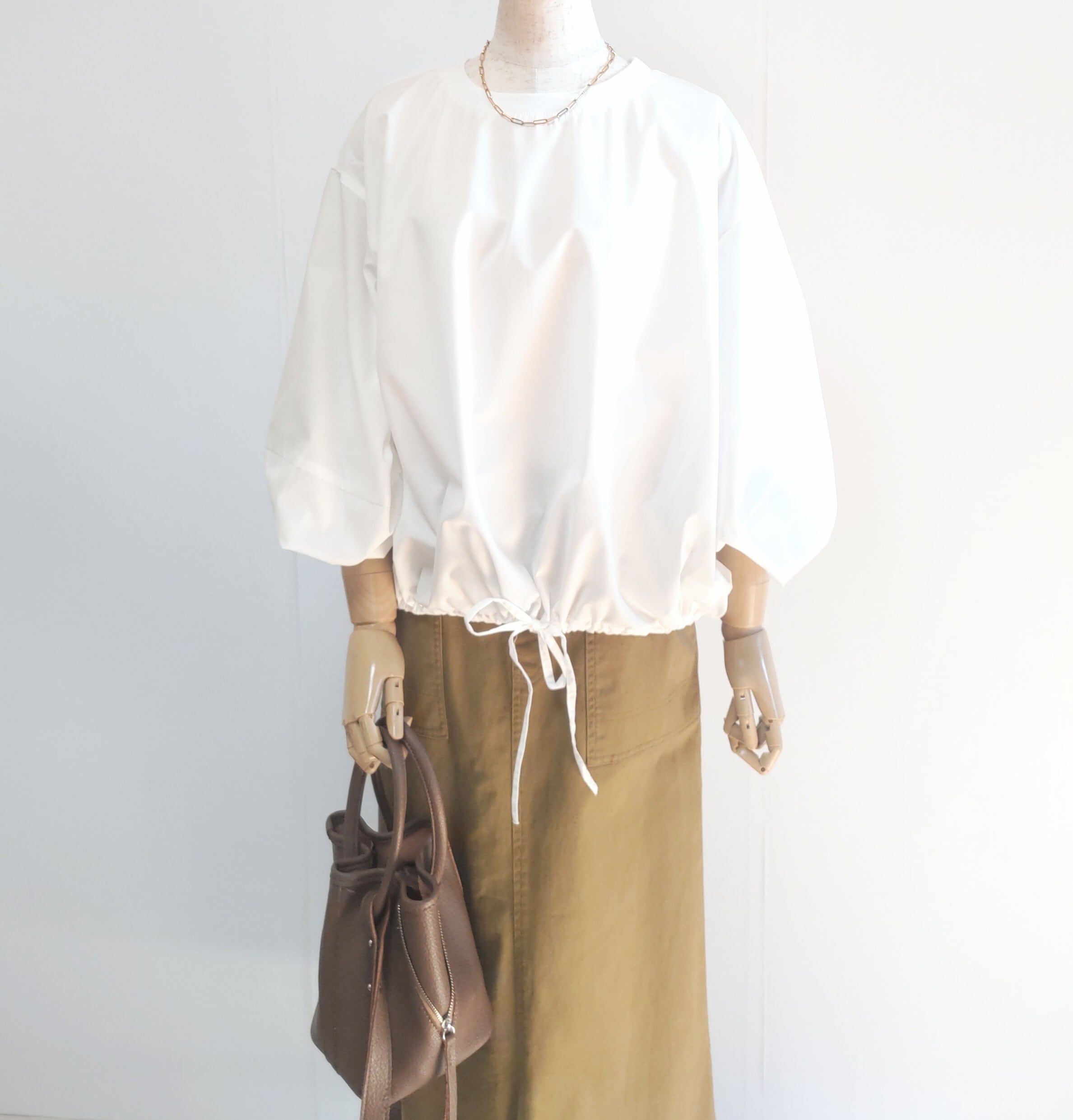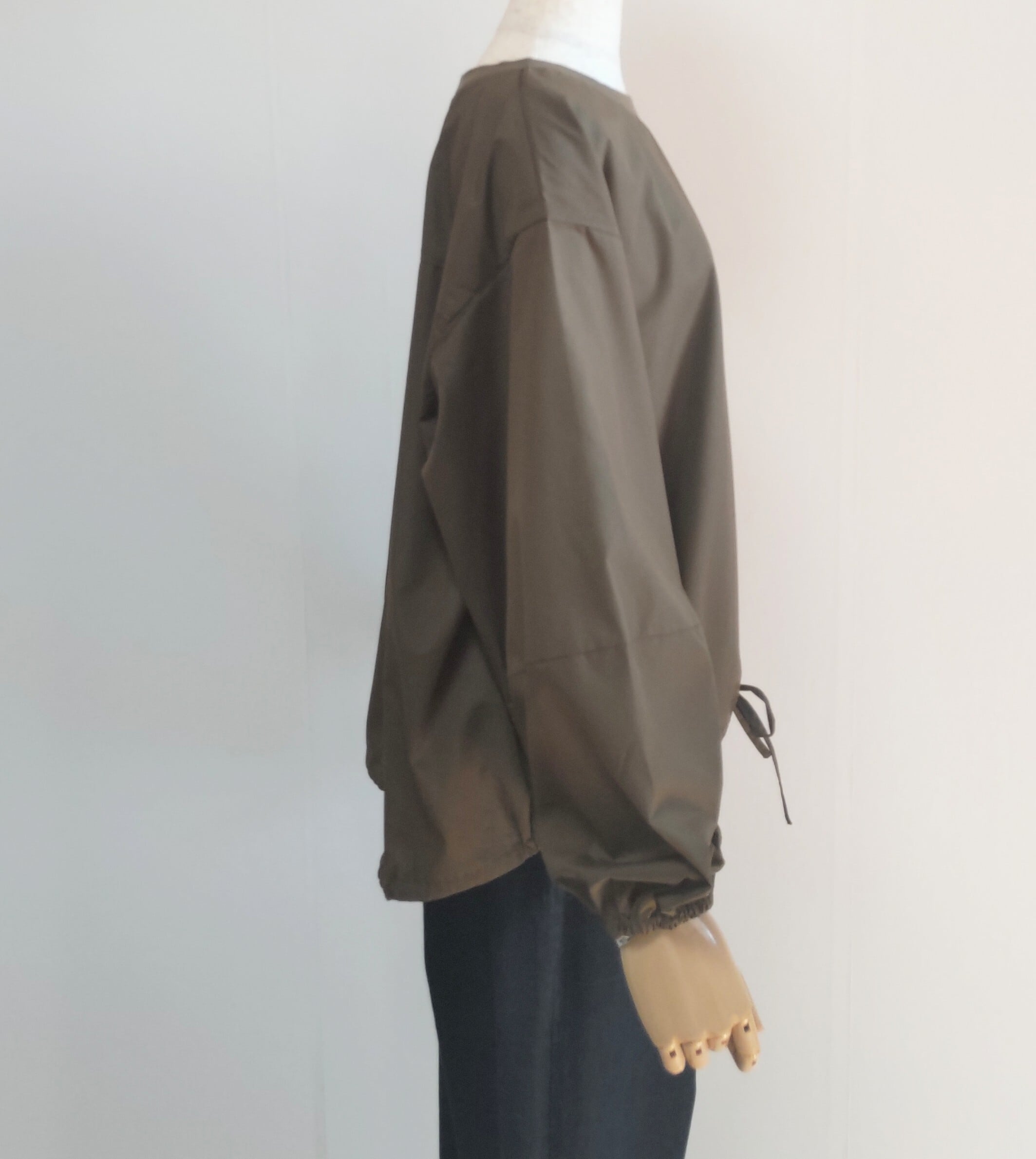 裾部分の紐でお好みのシルエットに調節可能。丸みのあるバルーン型に変更することもできます。