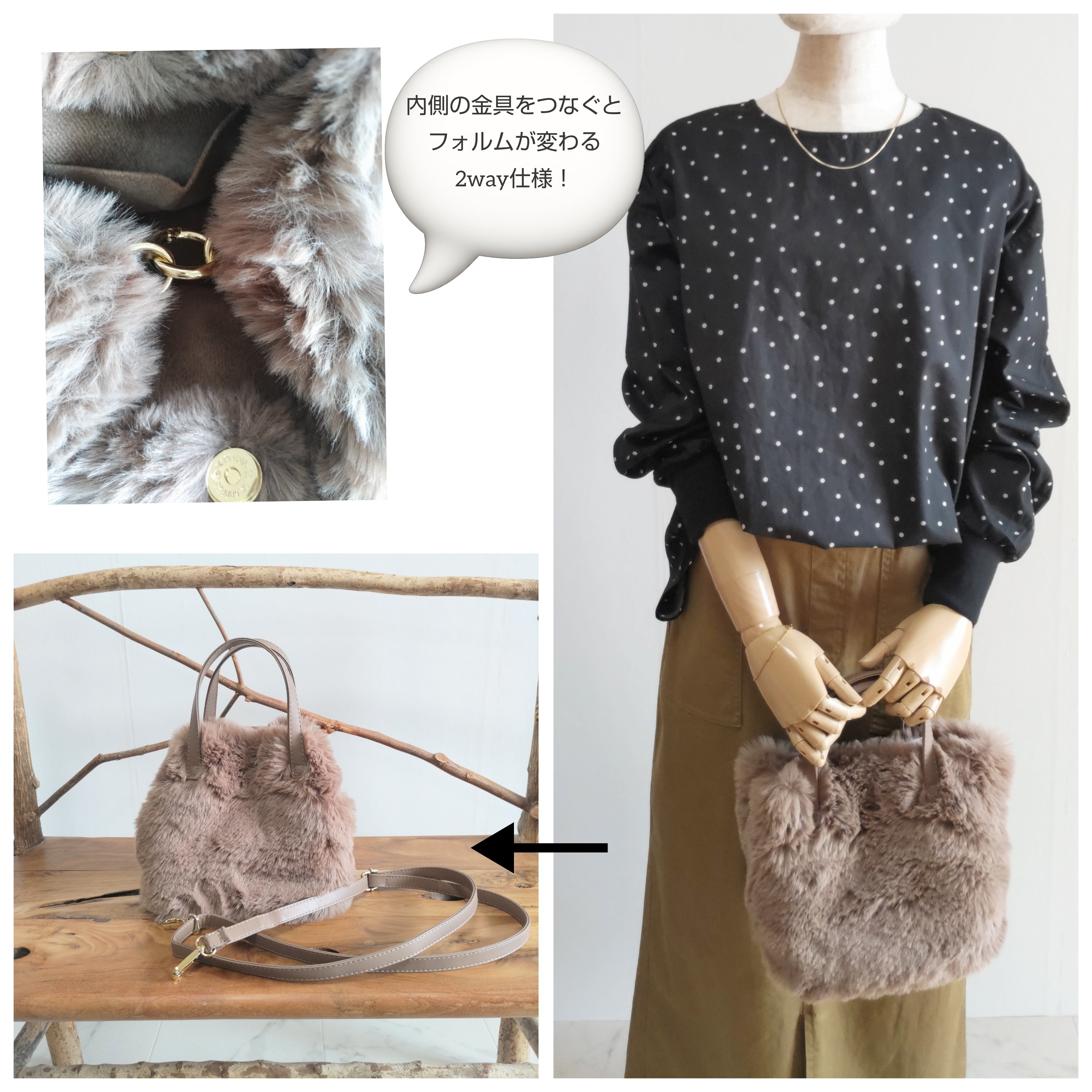 フェイクファーとコロンとしたフォルムが可愛い2wayバッグ。