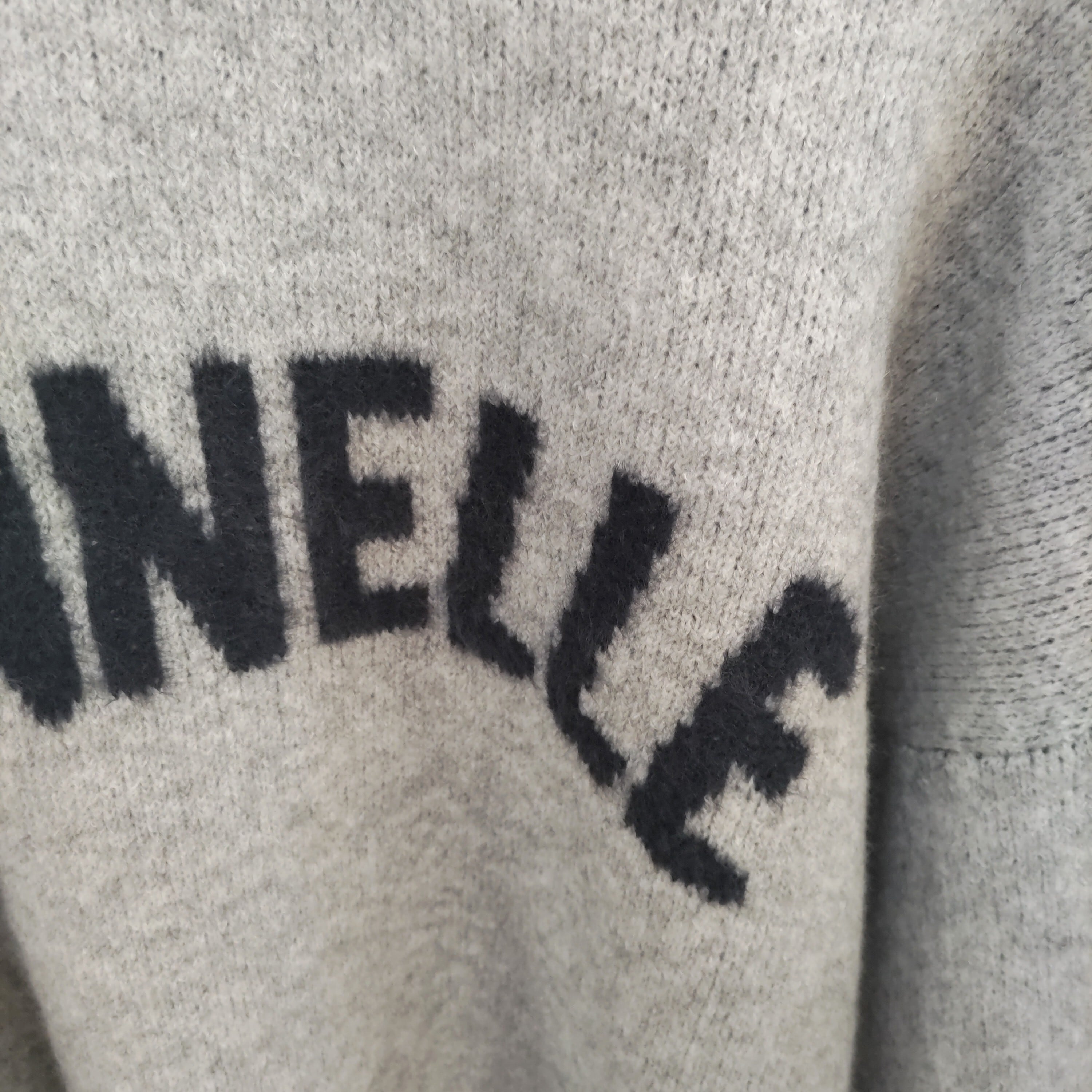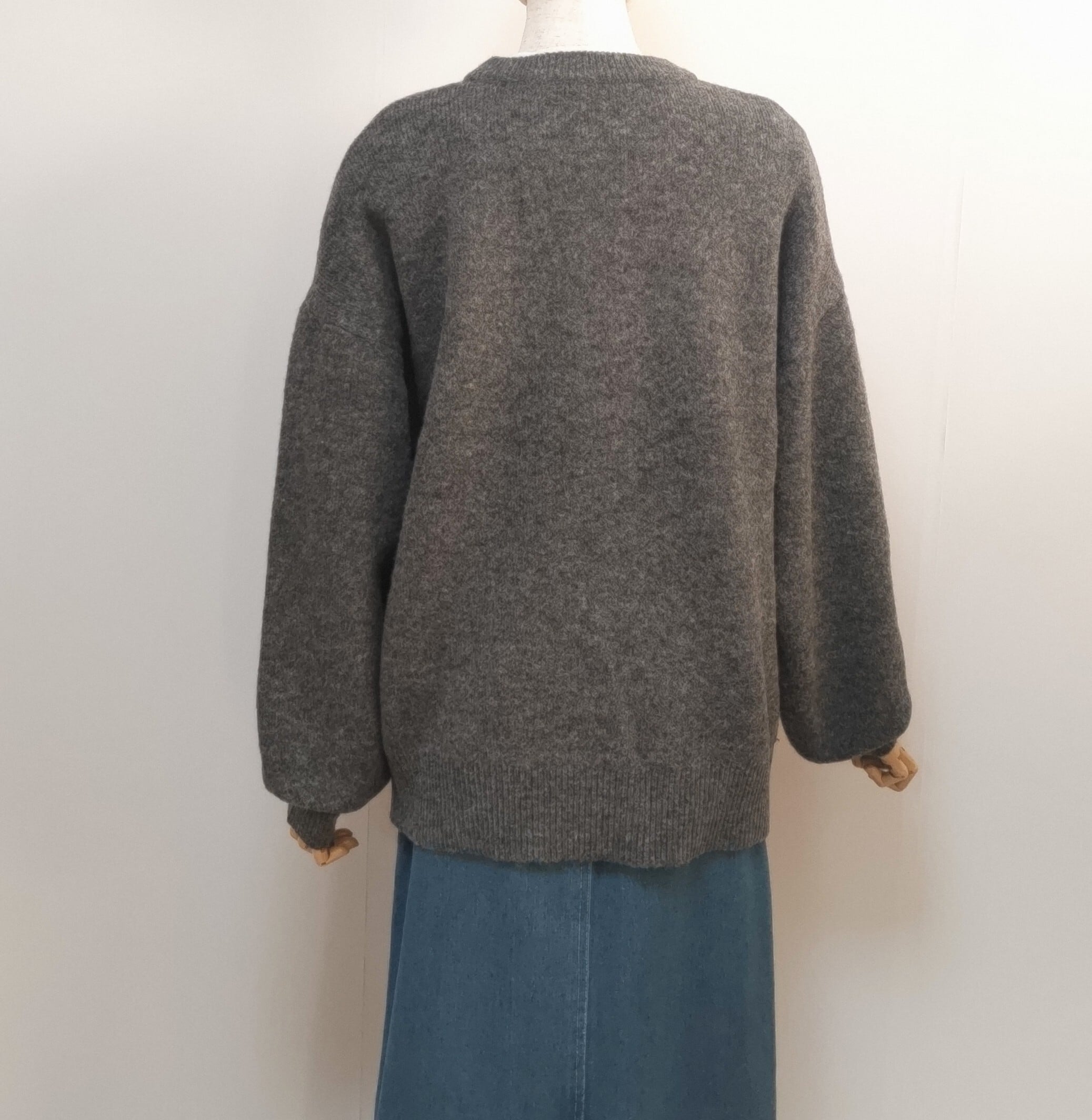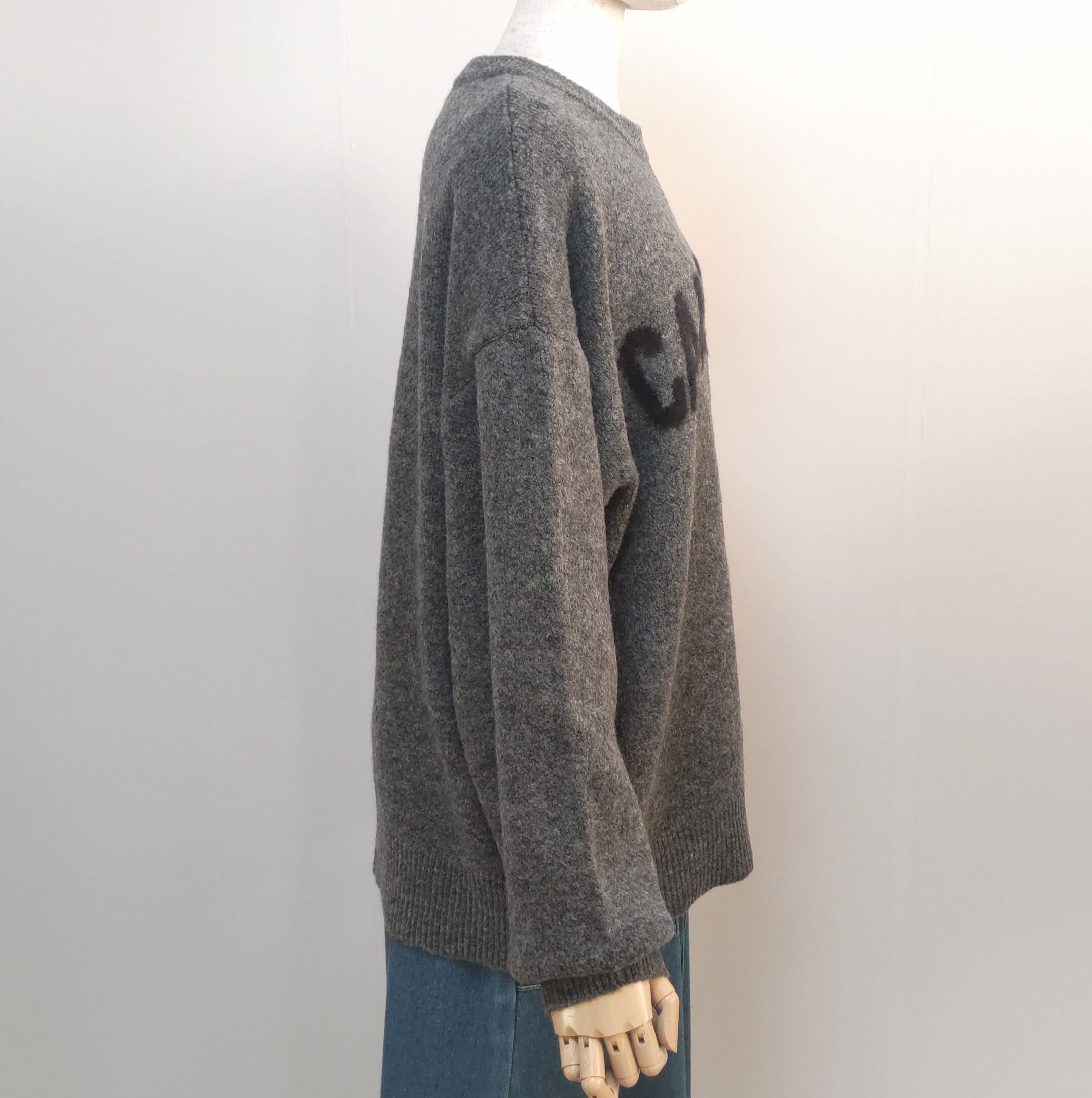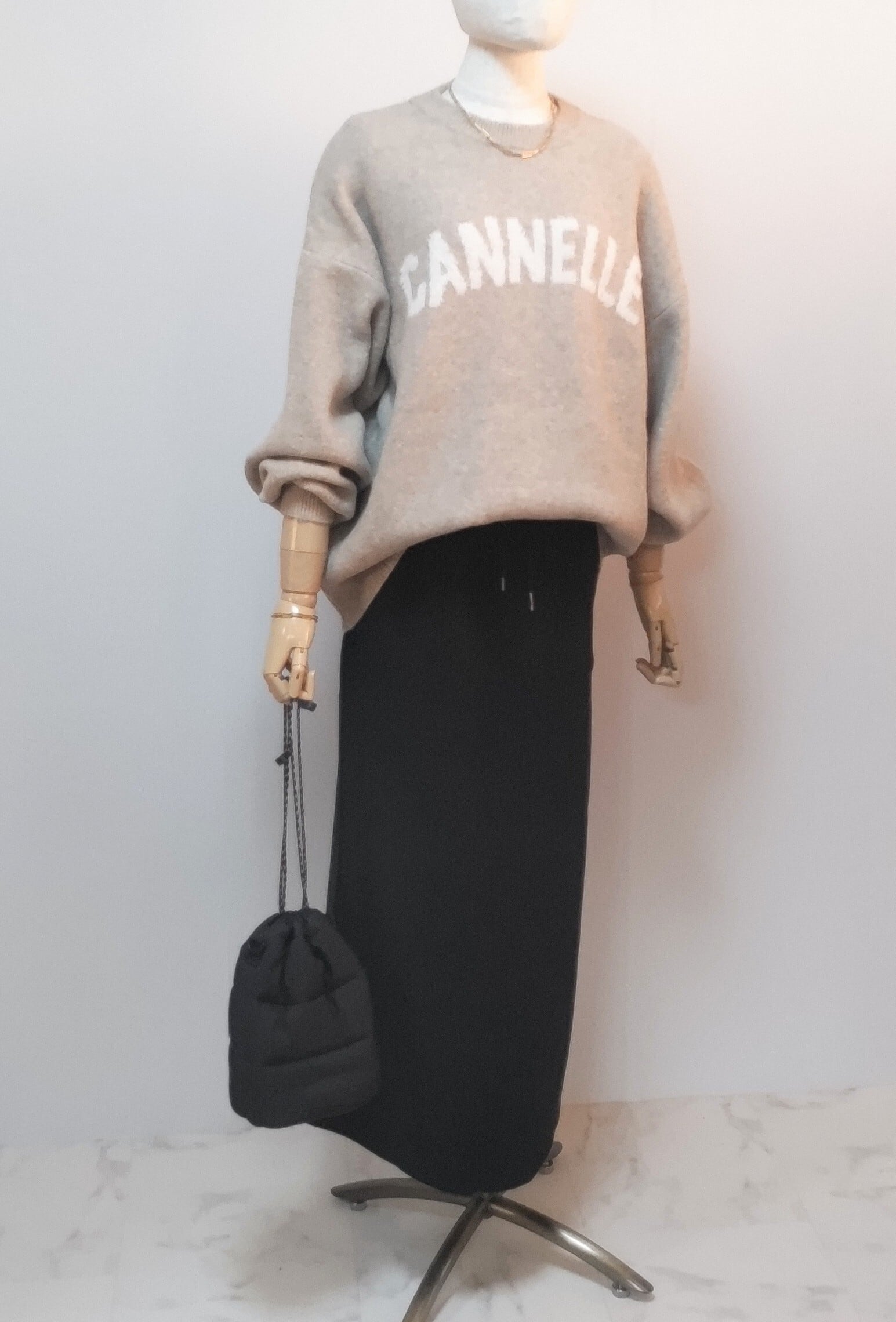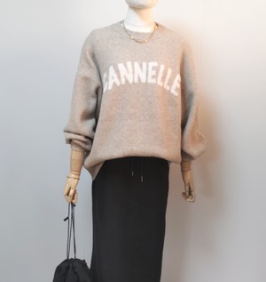 ロゴ部分はフェザー素材になっており、モヘアタッチニットとのコンビがポイントです。