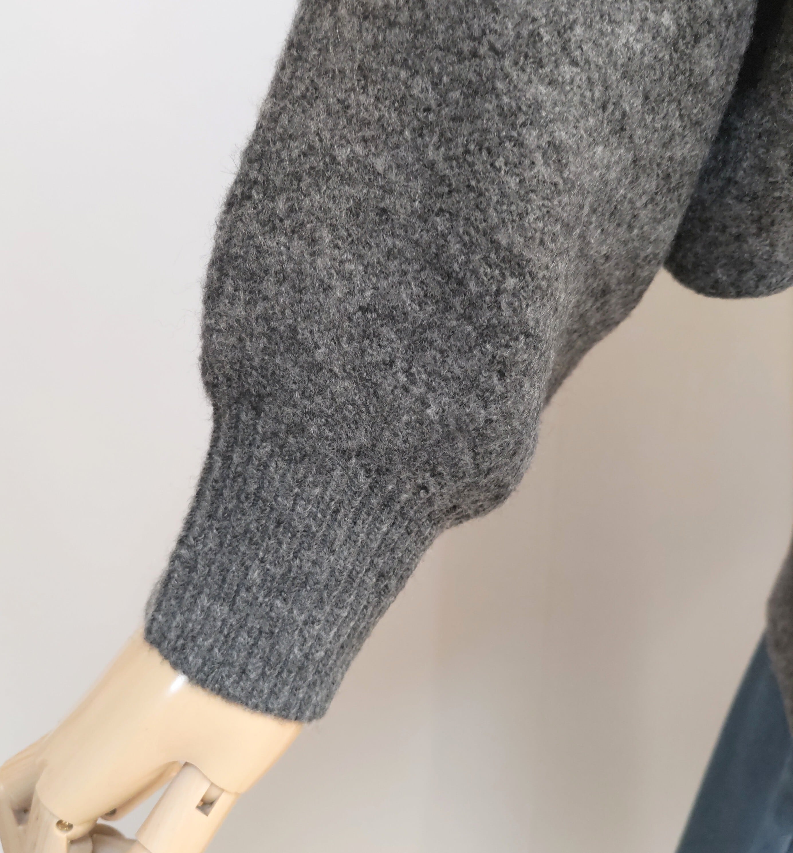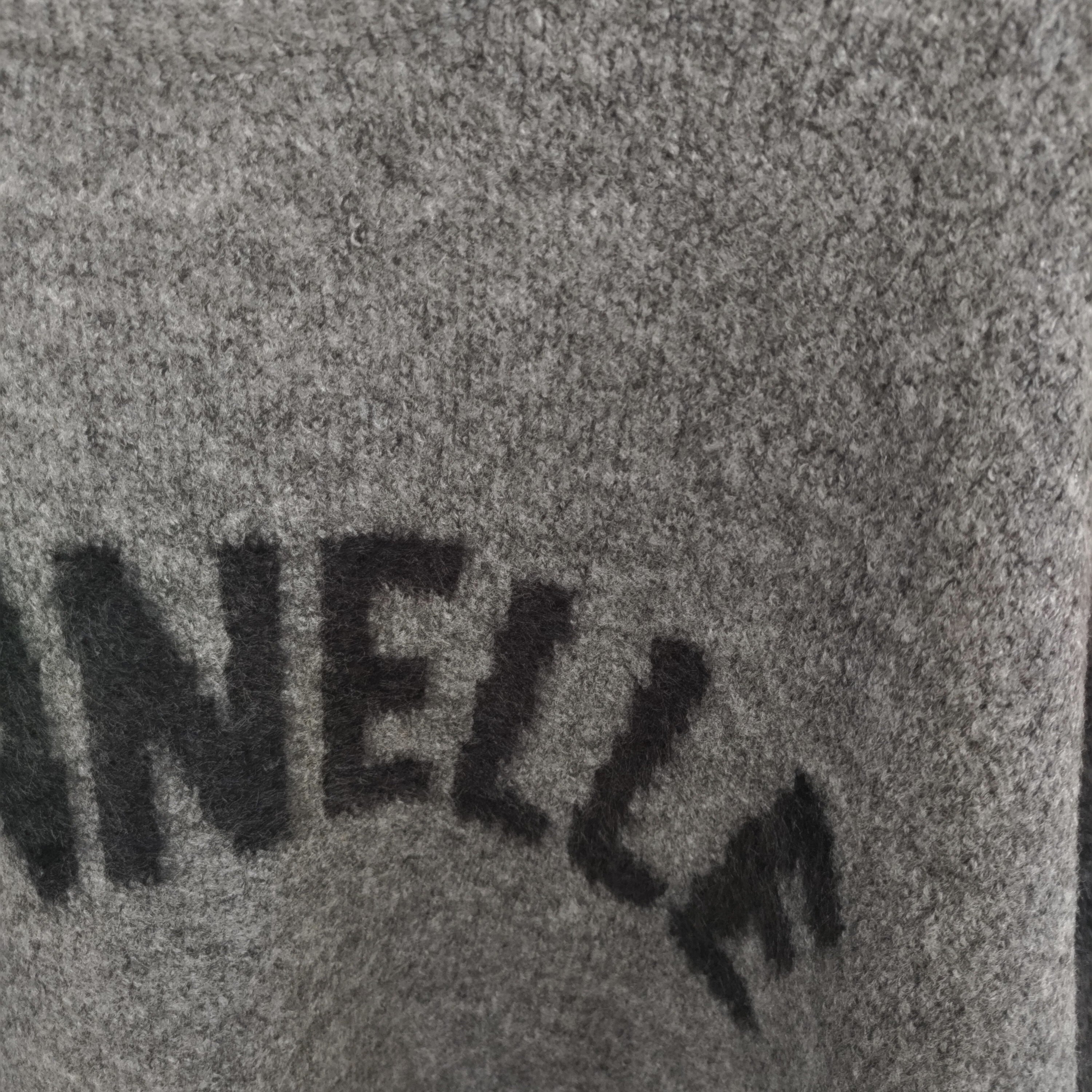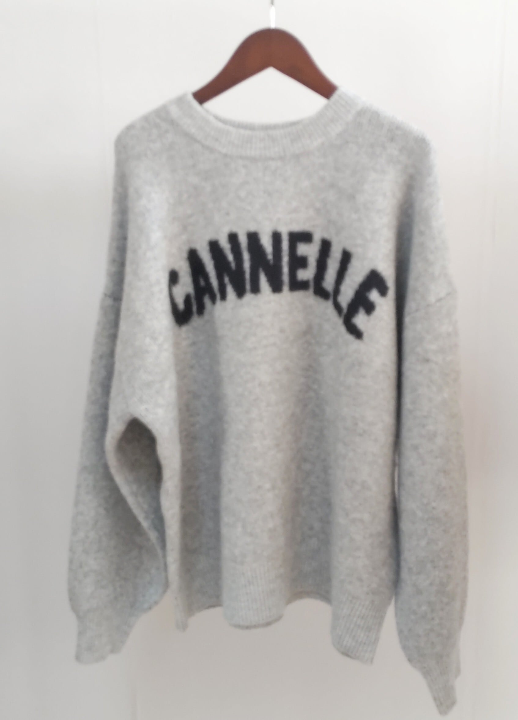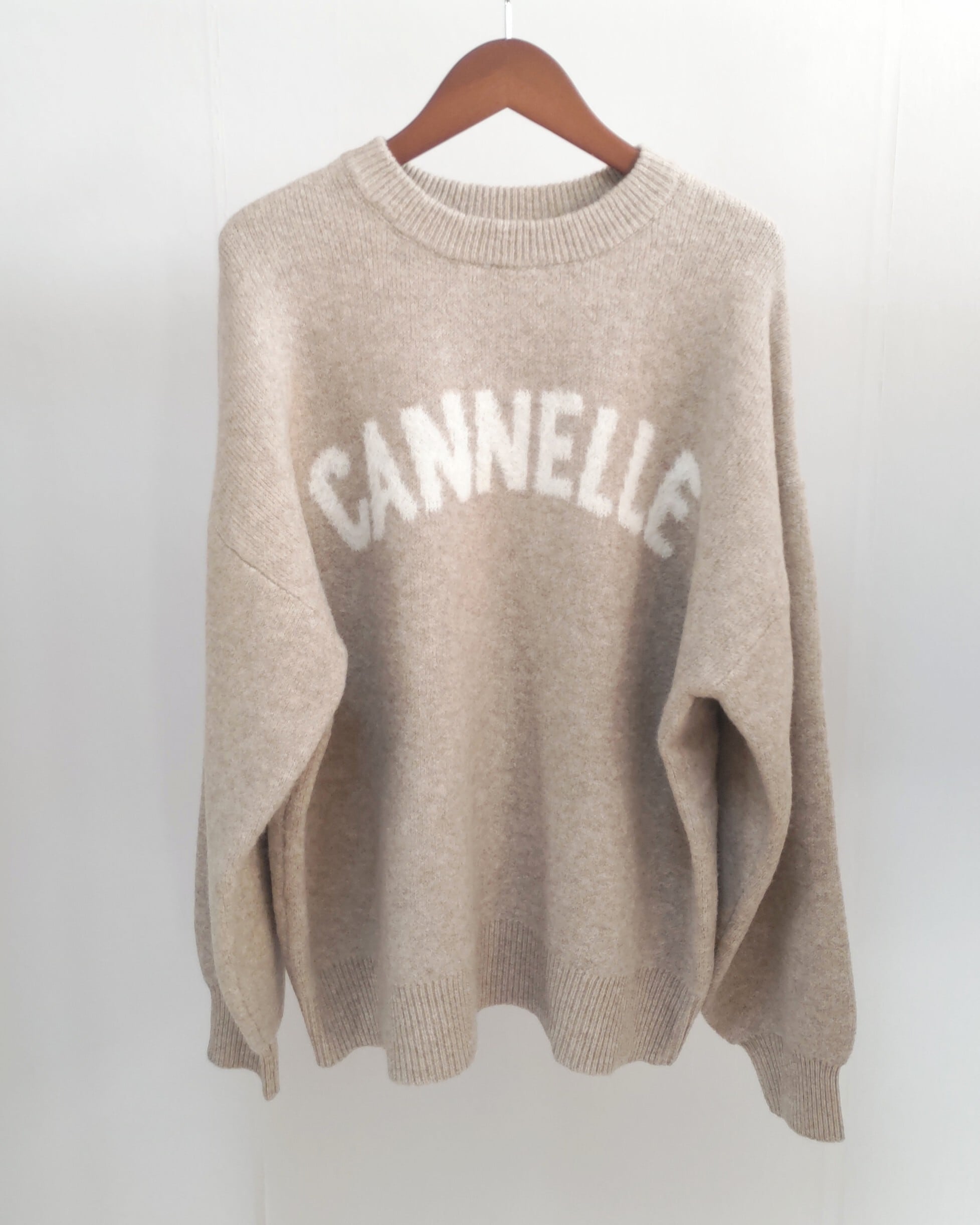 ロゴ部分はフェザー素材になっており、モヘアタッチニットとのコンビがポイントです。