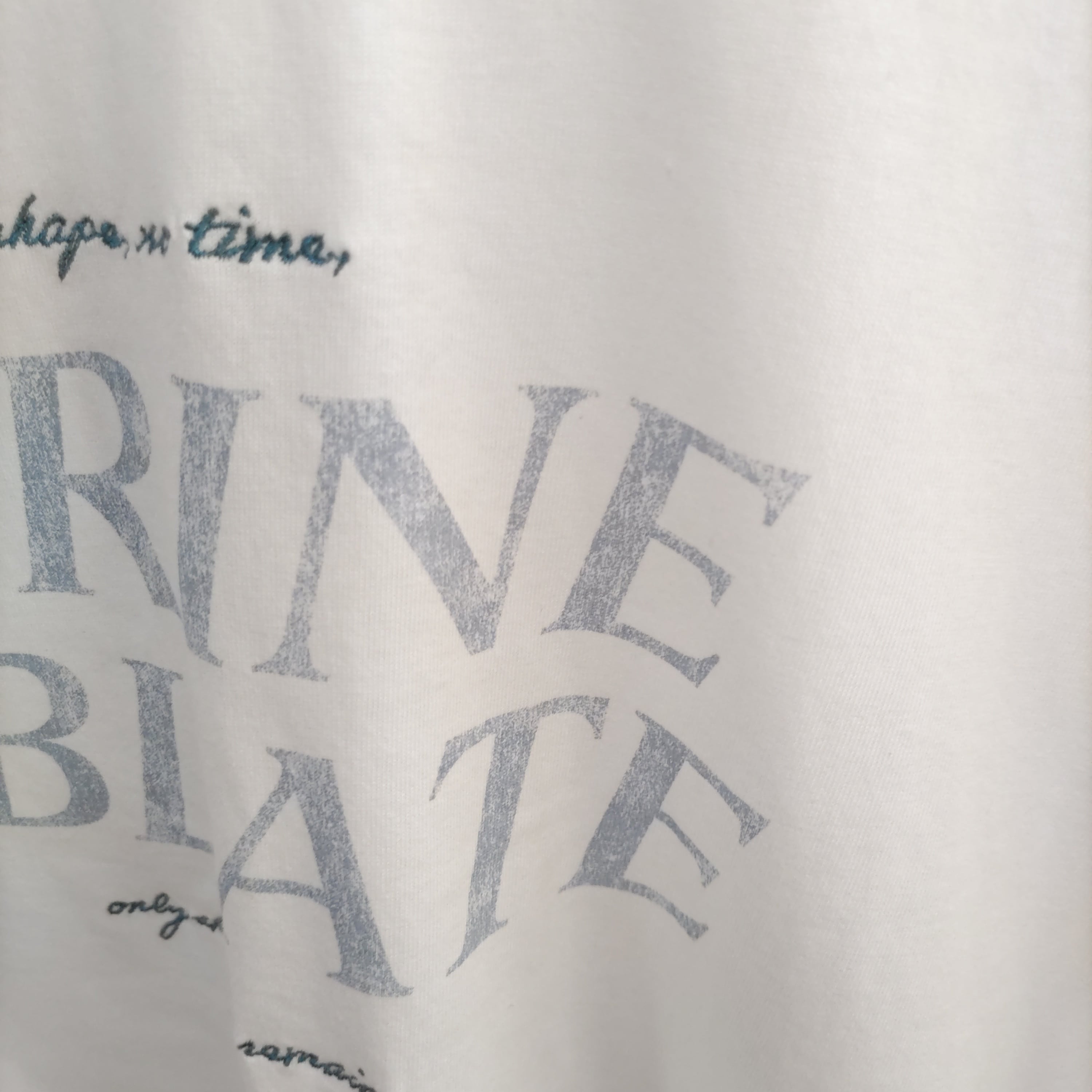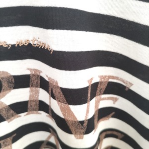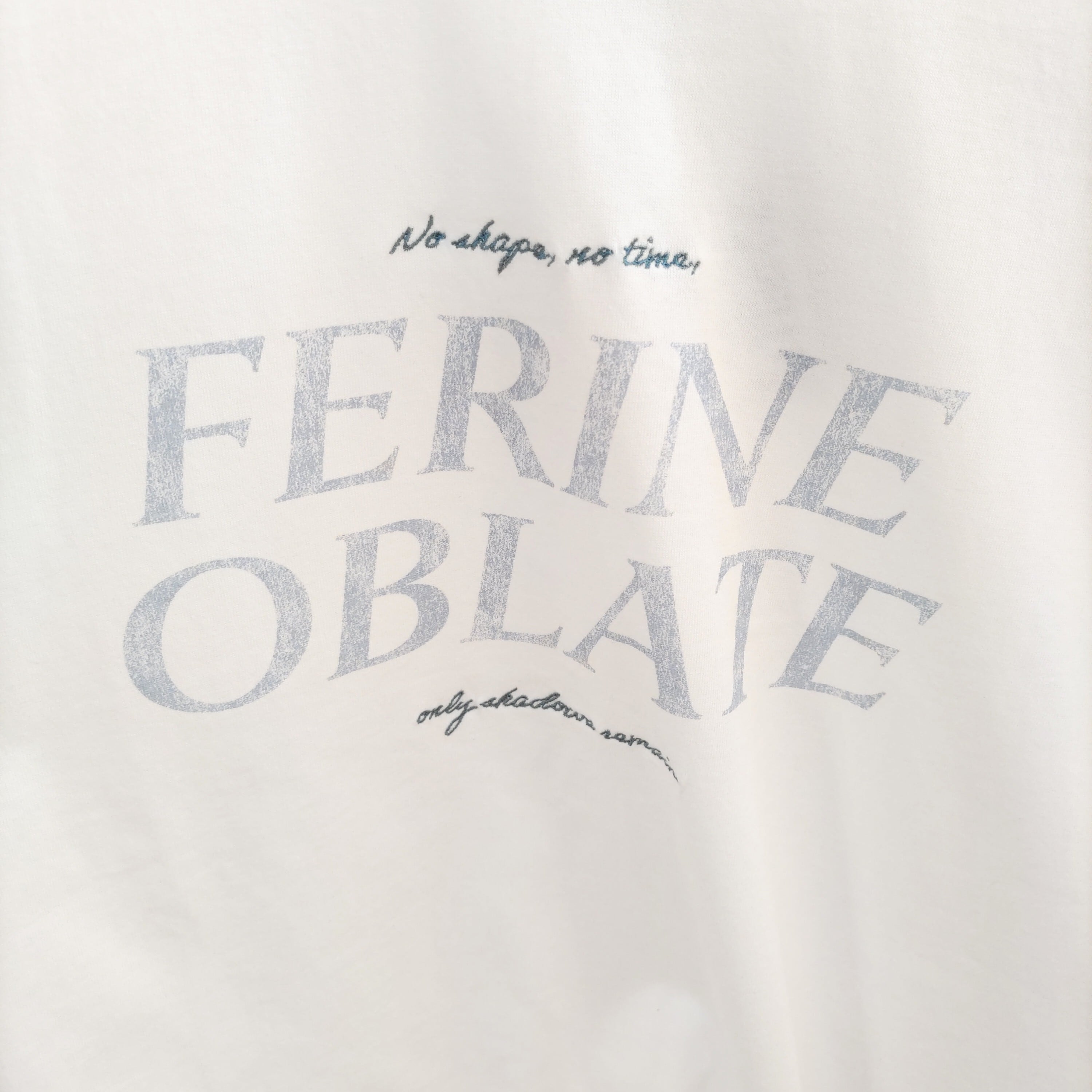 フロントのロゴは、かすれプリントの上に刺繍を重ねた二重構造。