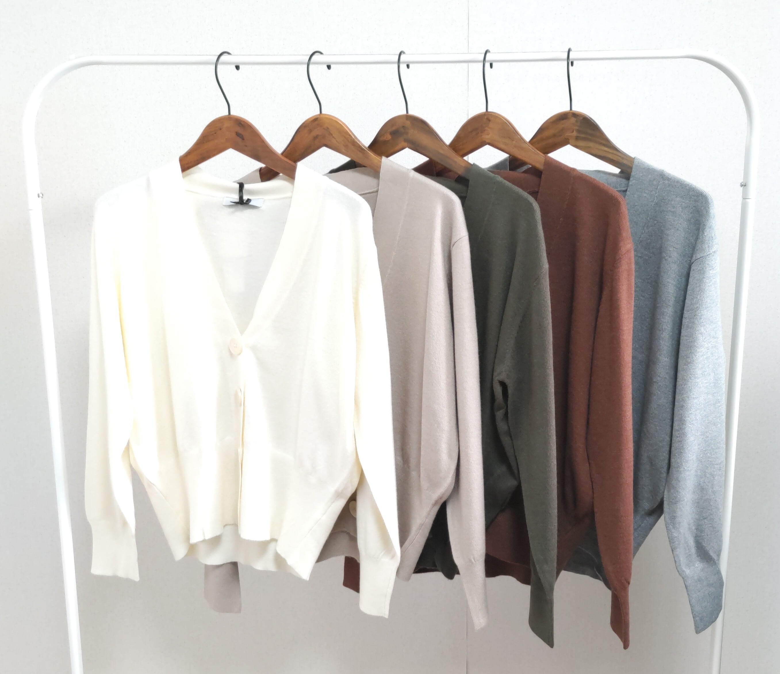 チクチクせず着心地抜群のニット、1枚は持っていたい羽織りです。