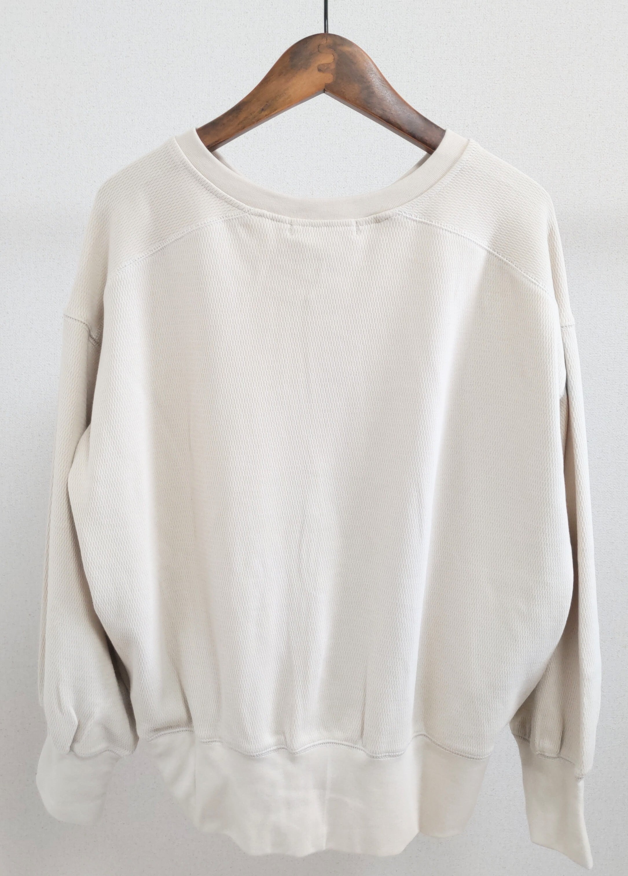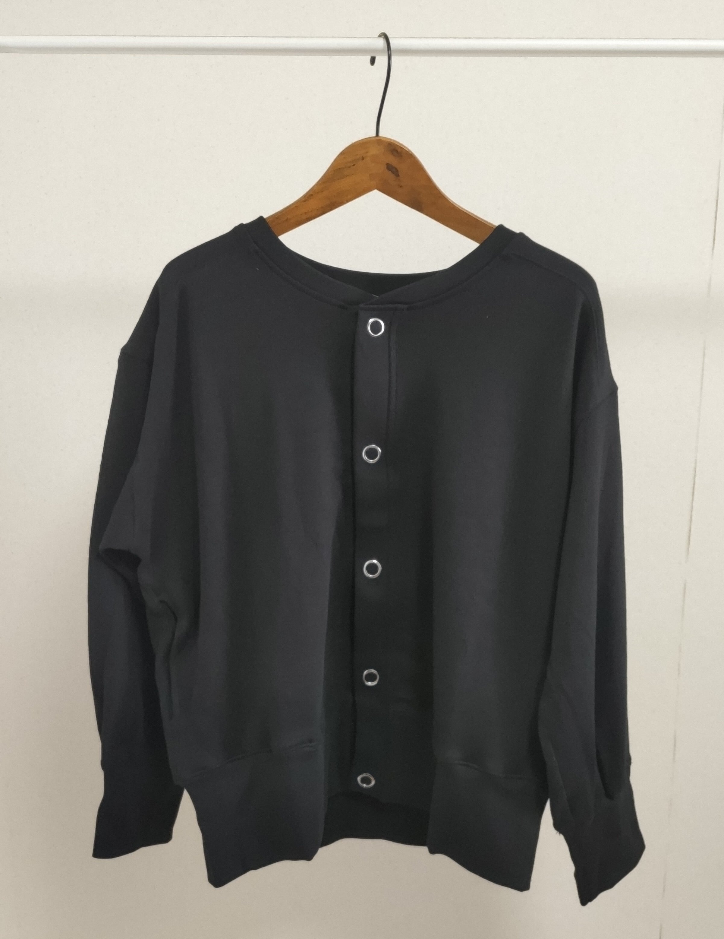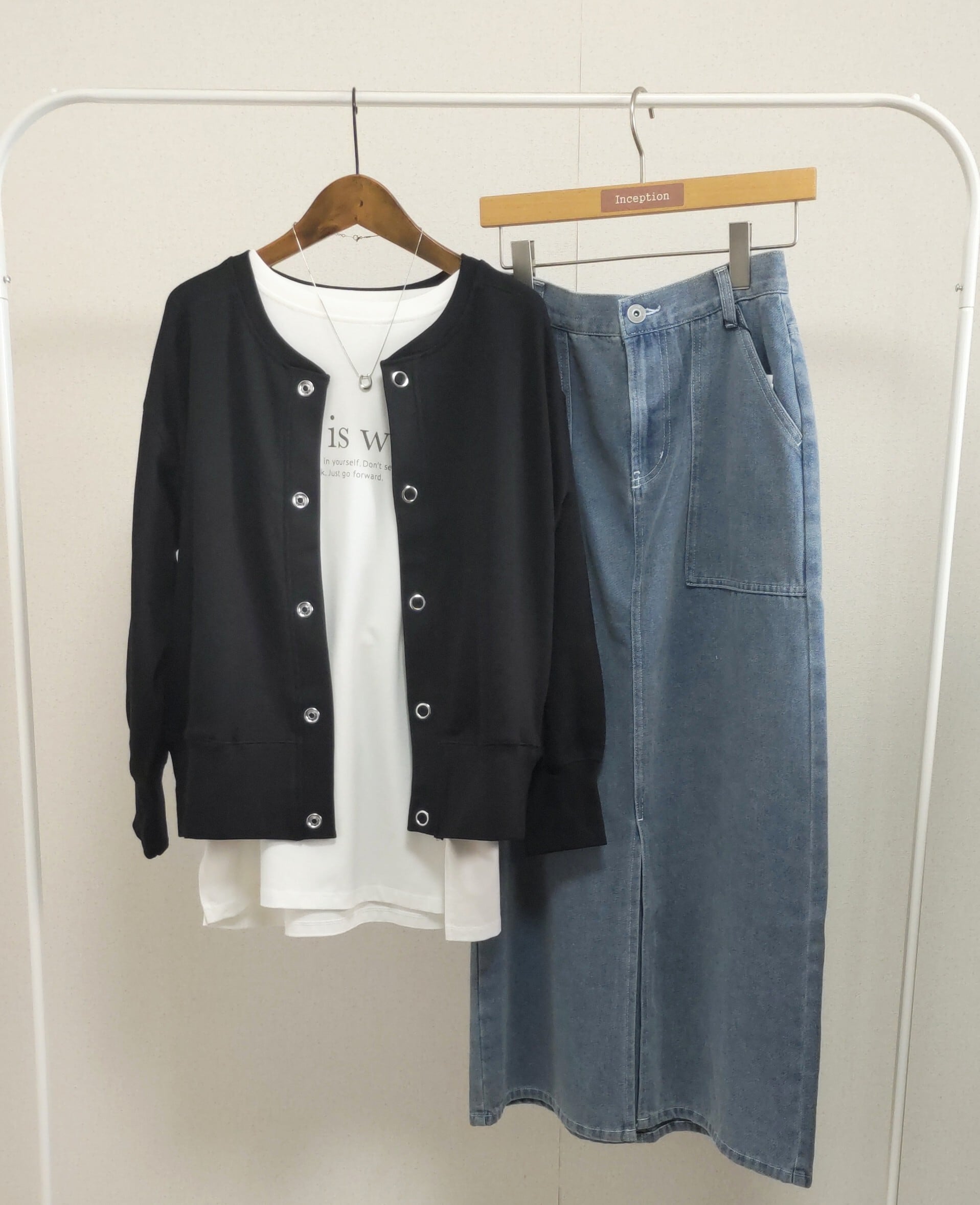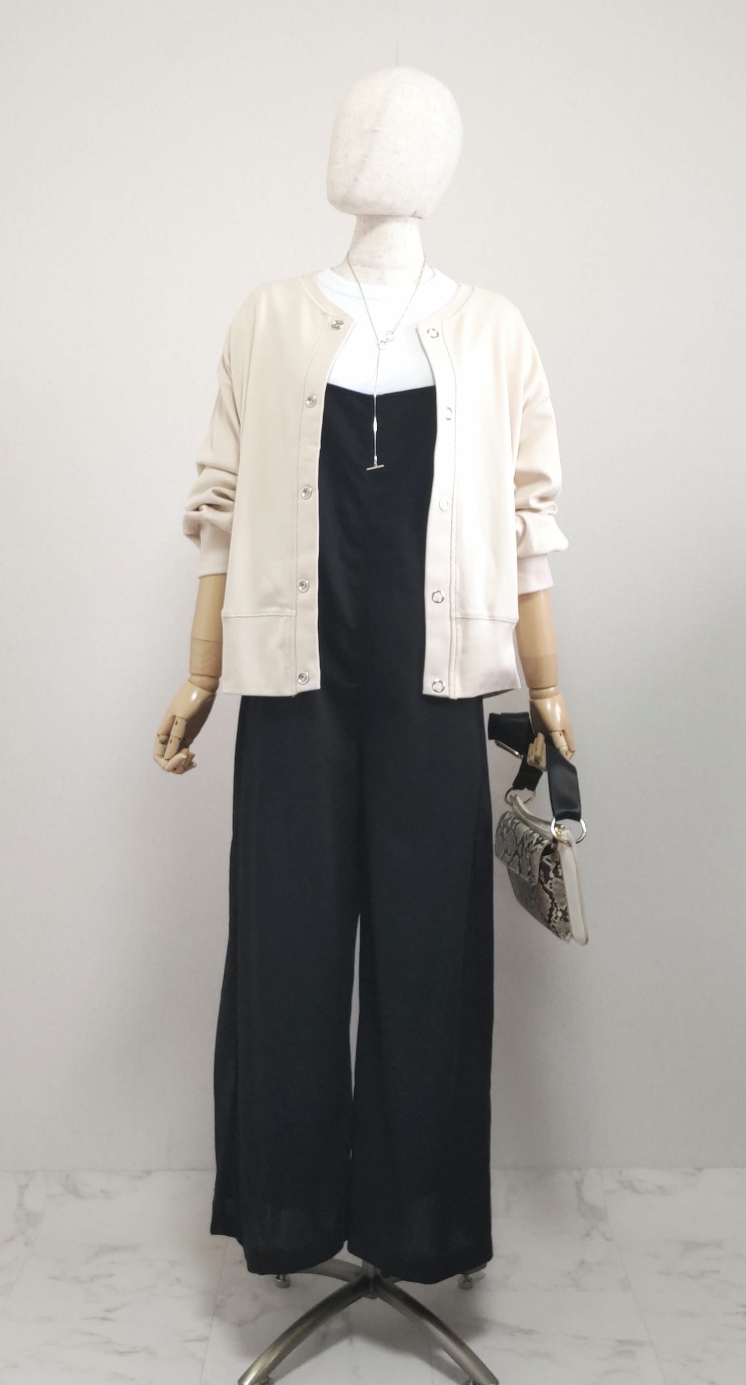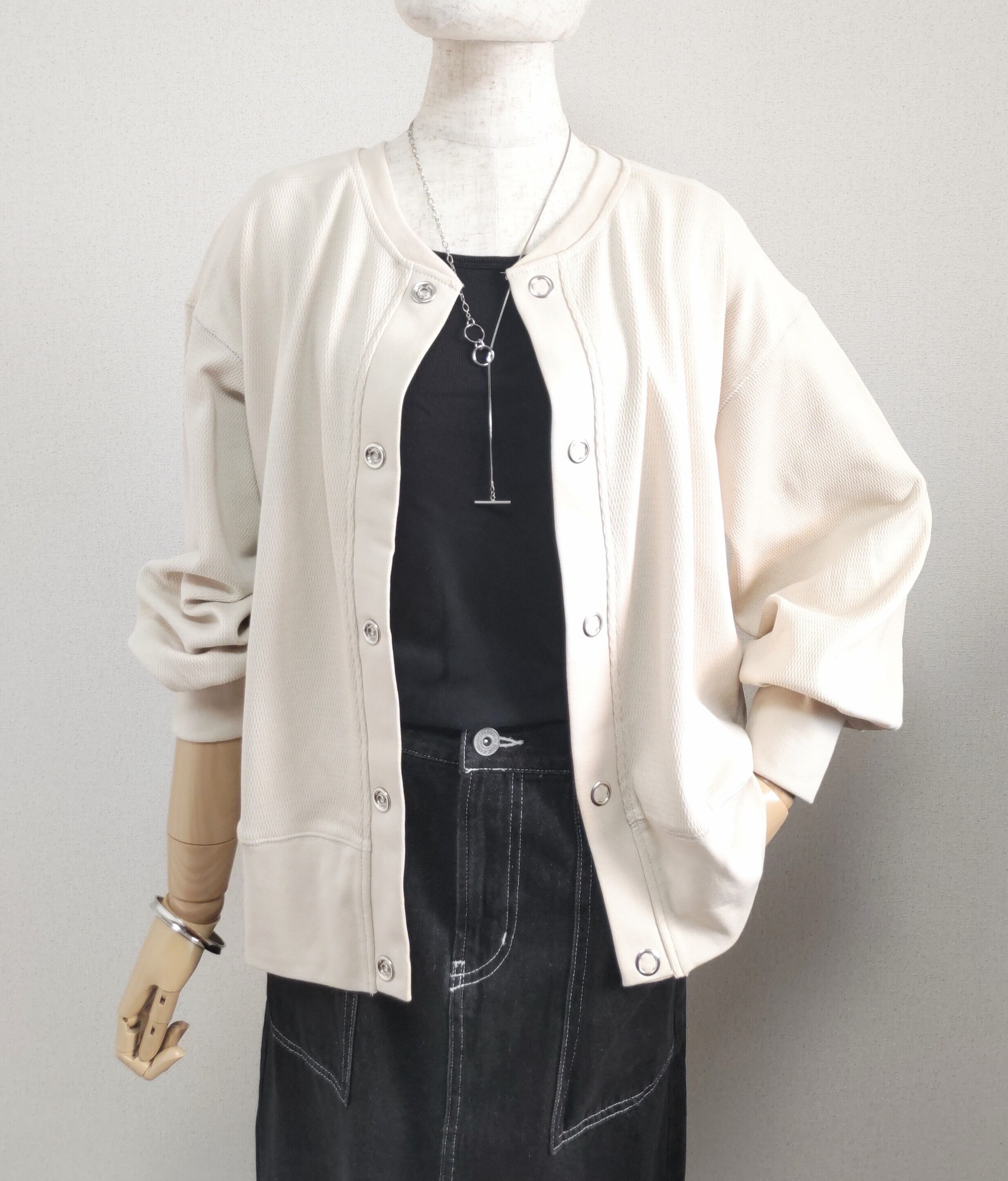 カットソー生地なのでストレッチが効いていて動きやすく、Tシャツやブラウスに気軽に羽織れます。