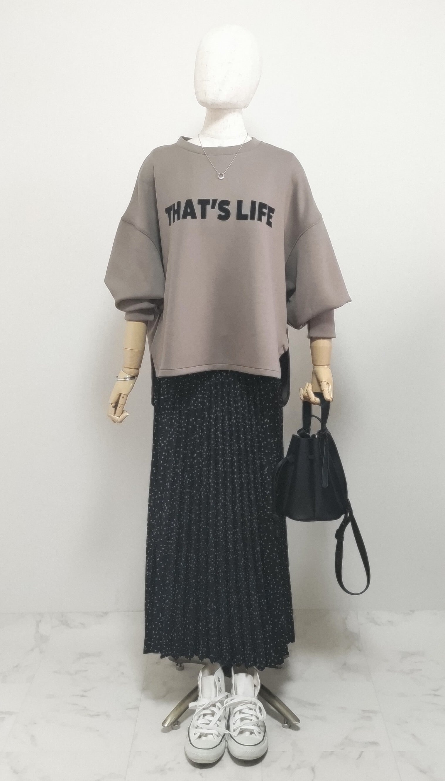 ドロップショルダーのリラックスしたシルエットがこなれ感を演出してくれます。