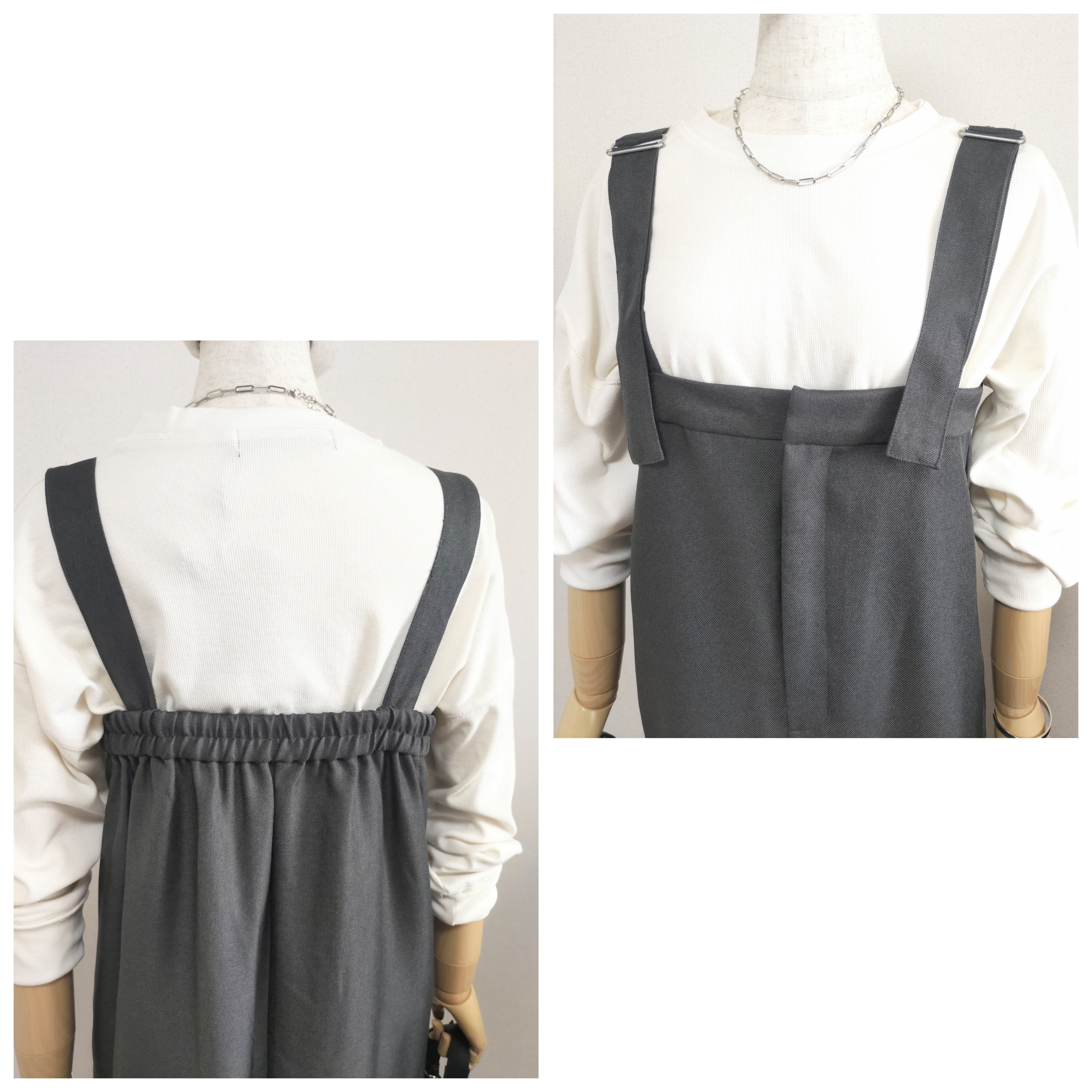 肩紐の長さが調節可能、後ろゴム+スリットでストレスフリーに着られるのも嬉しいポイントです。