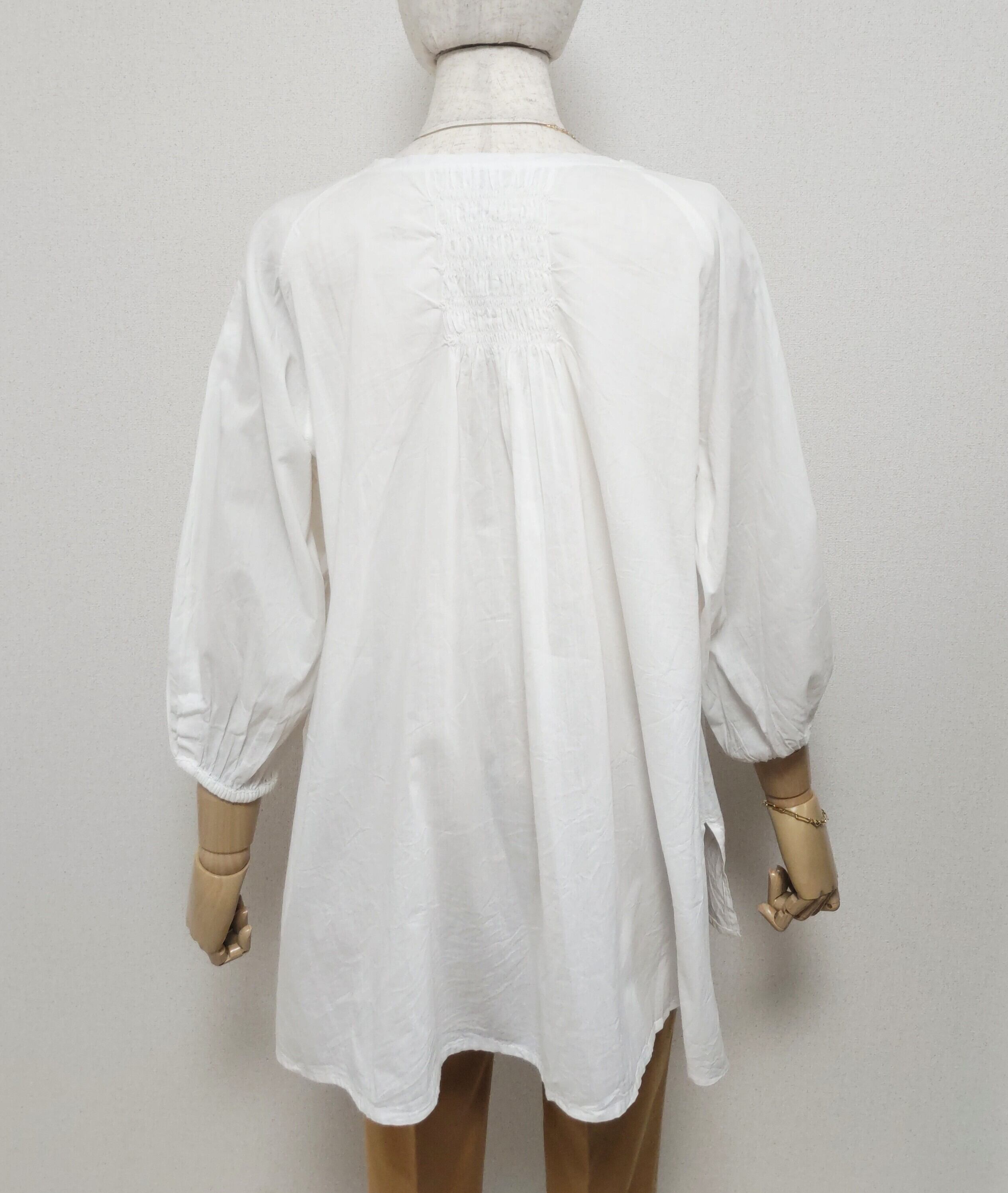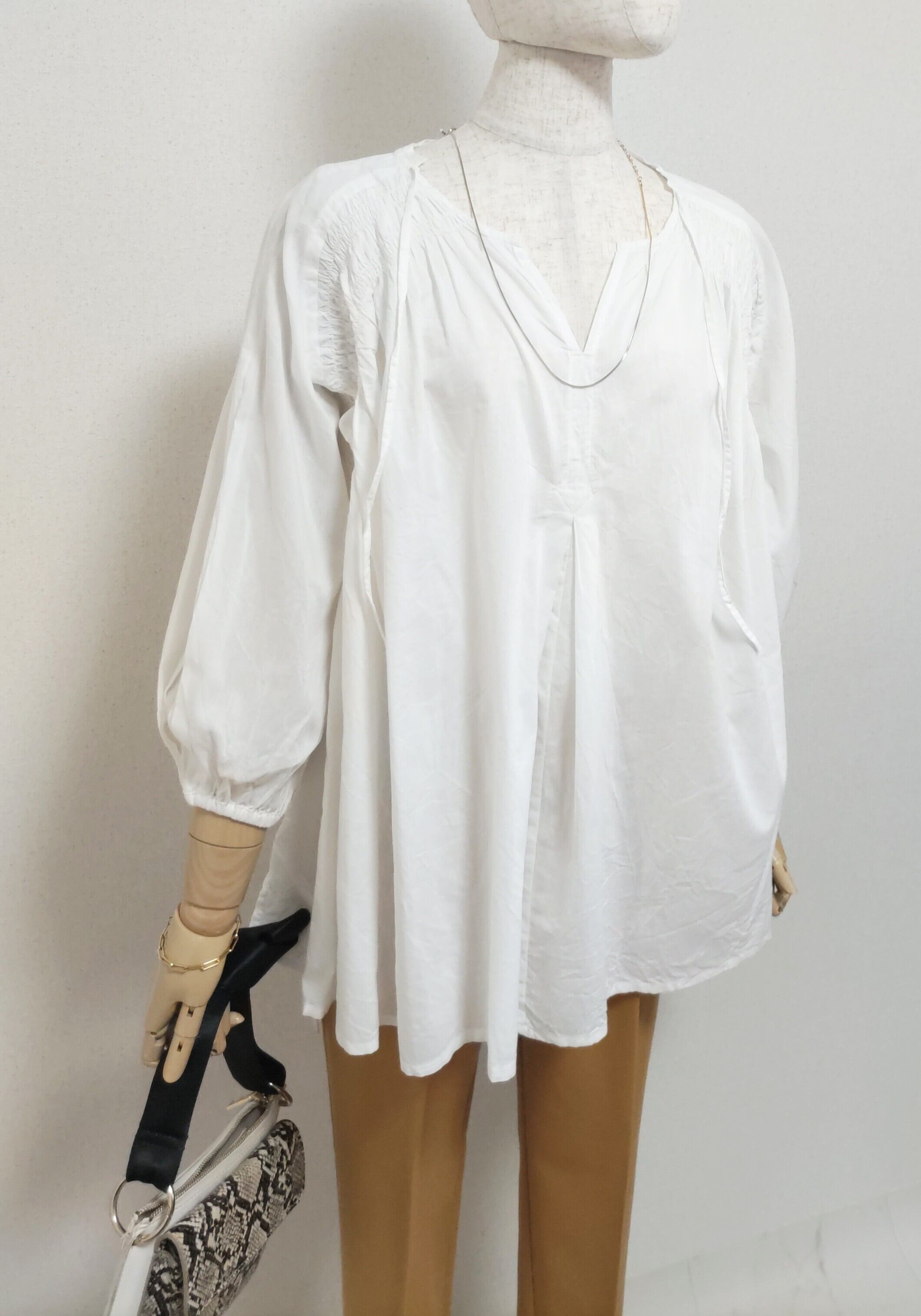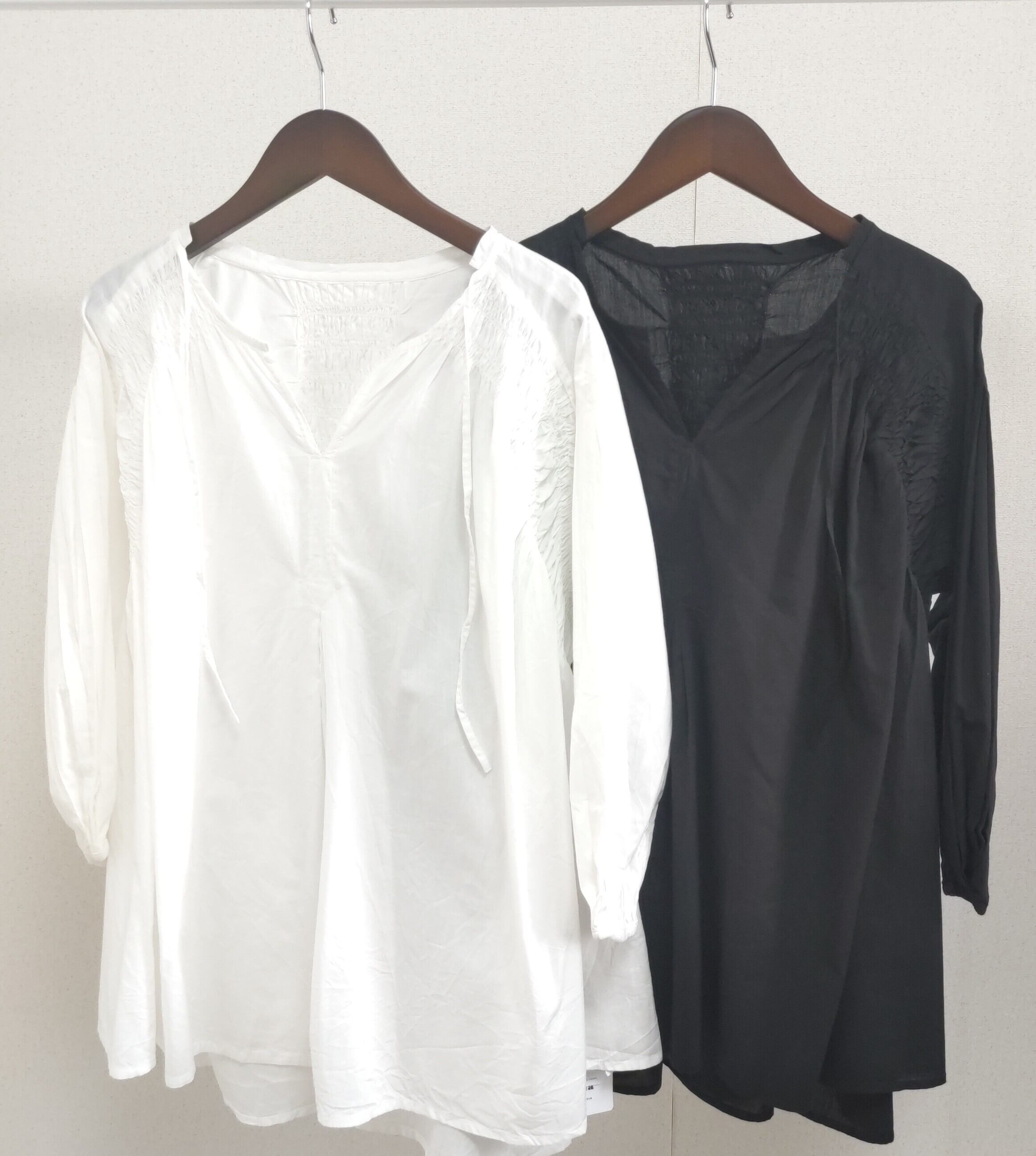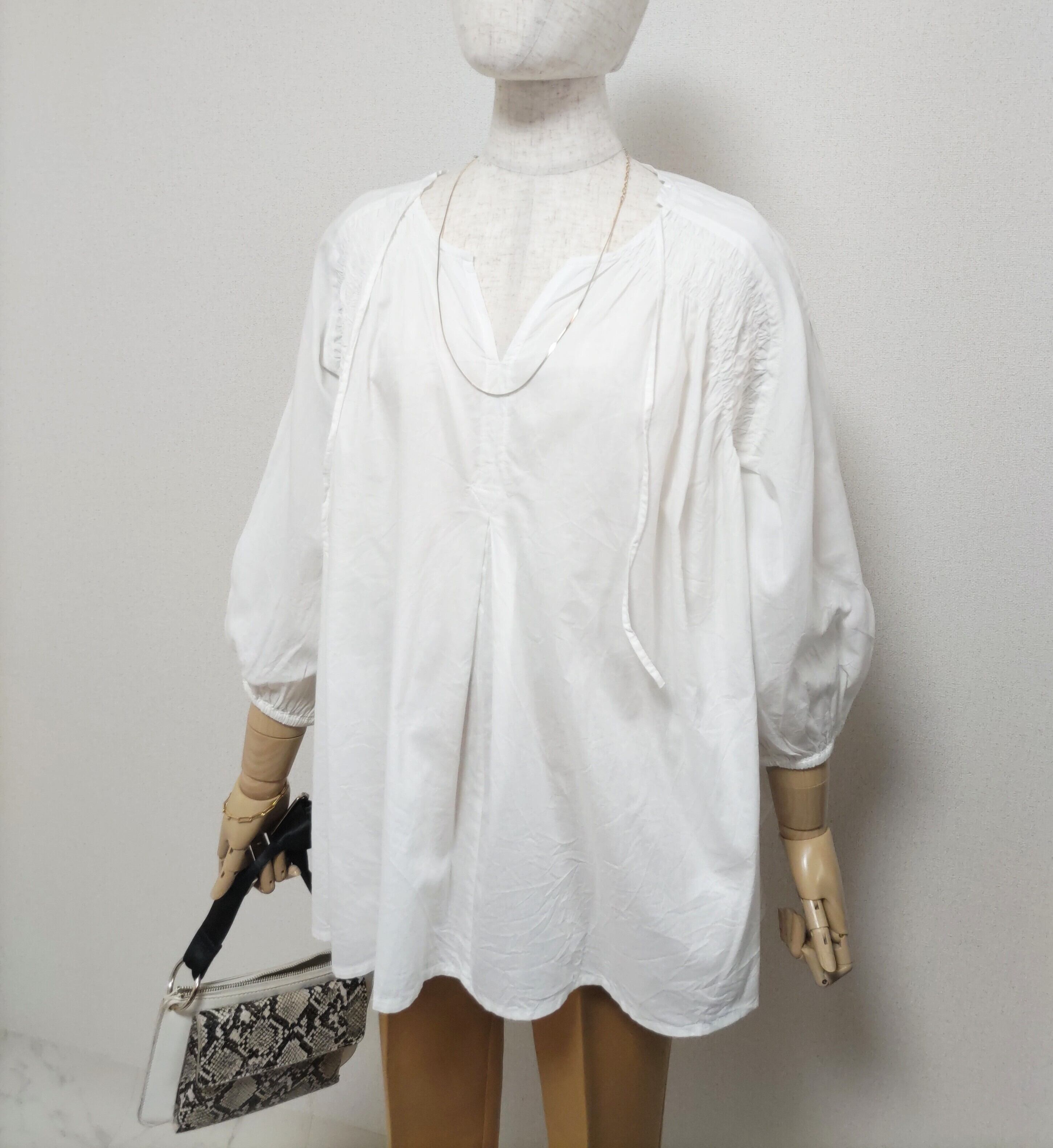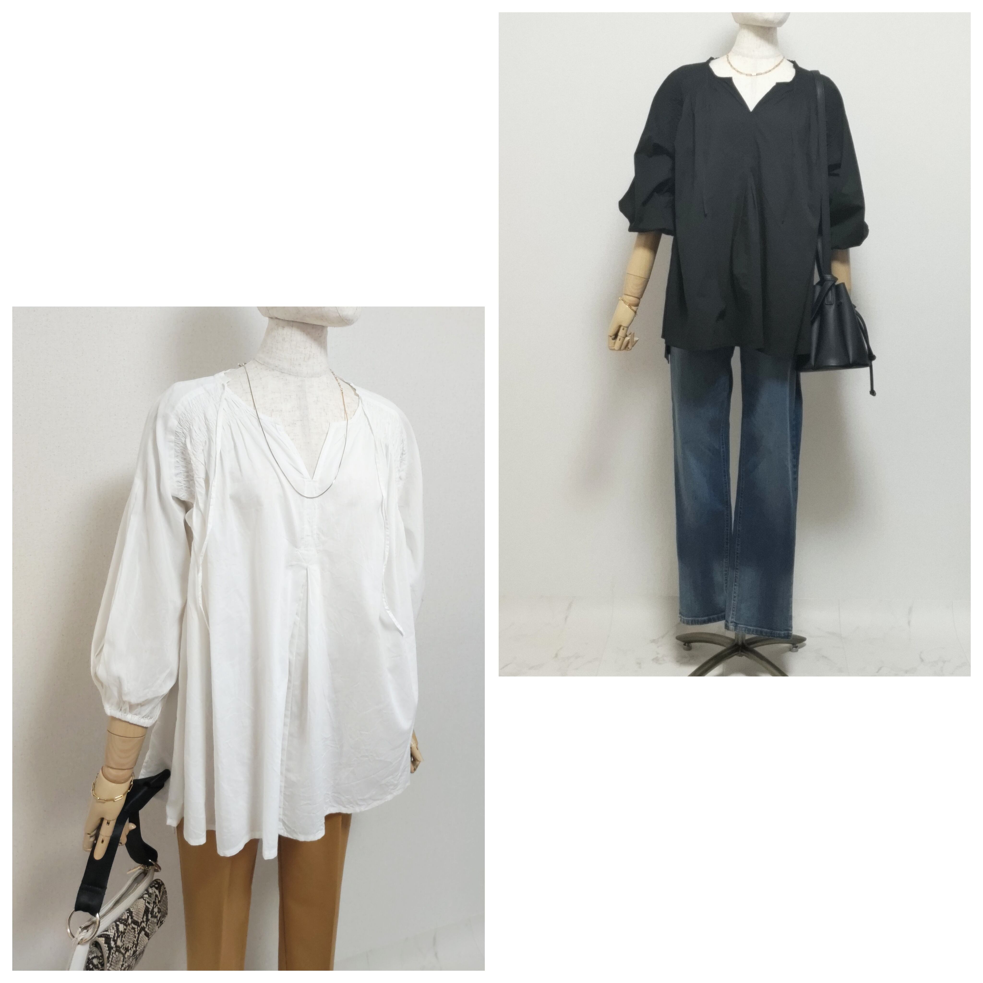 シャーリングデザインと袖口のパフ感がポイントのブラウス!
