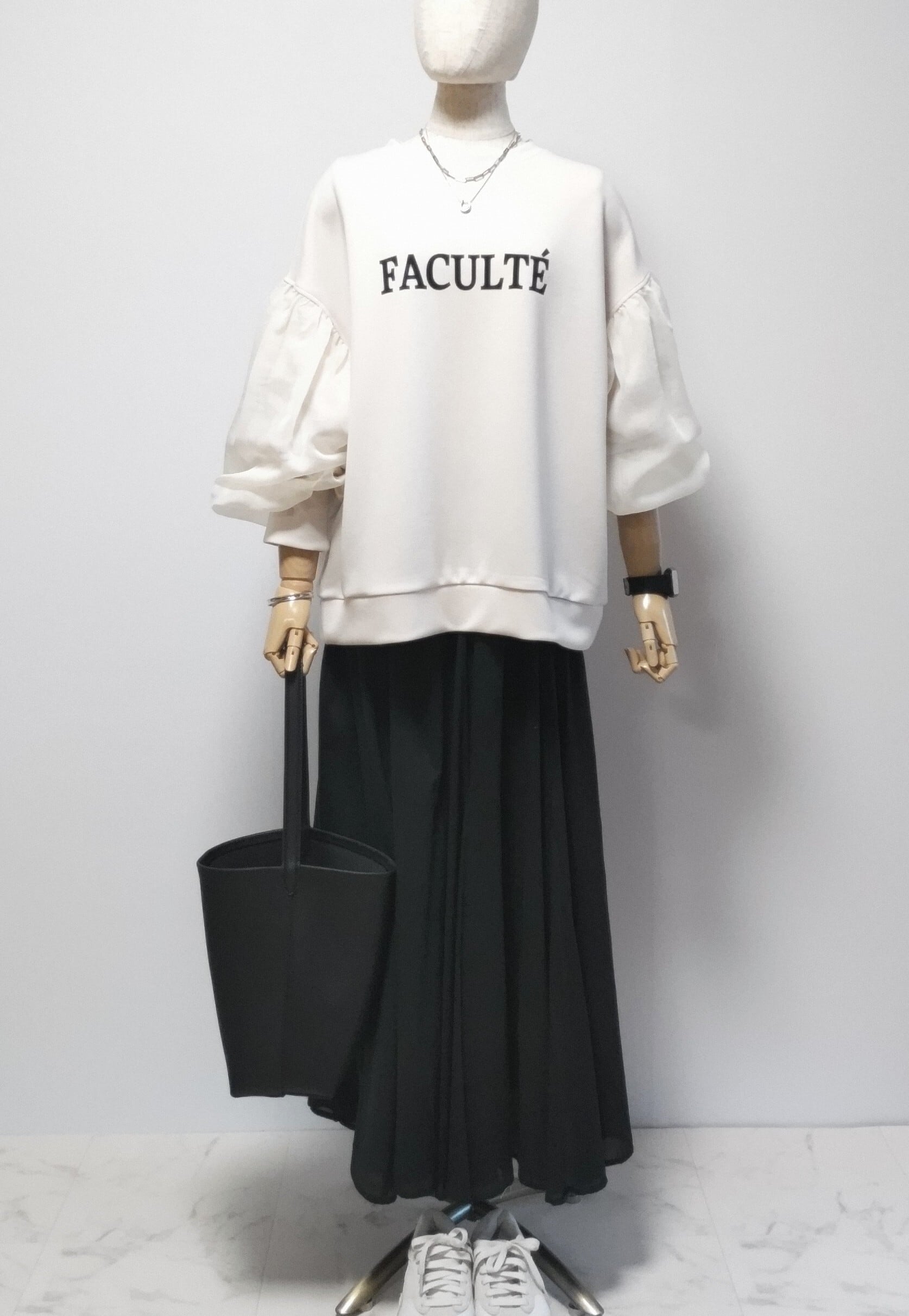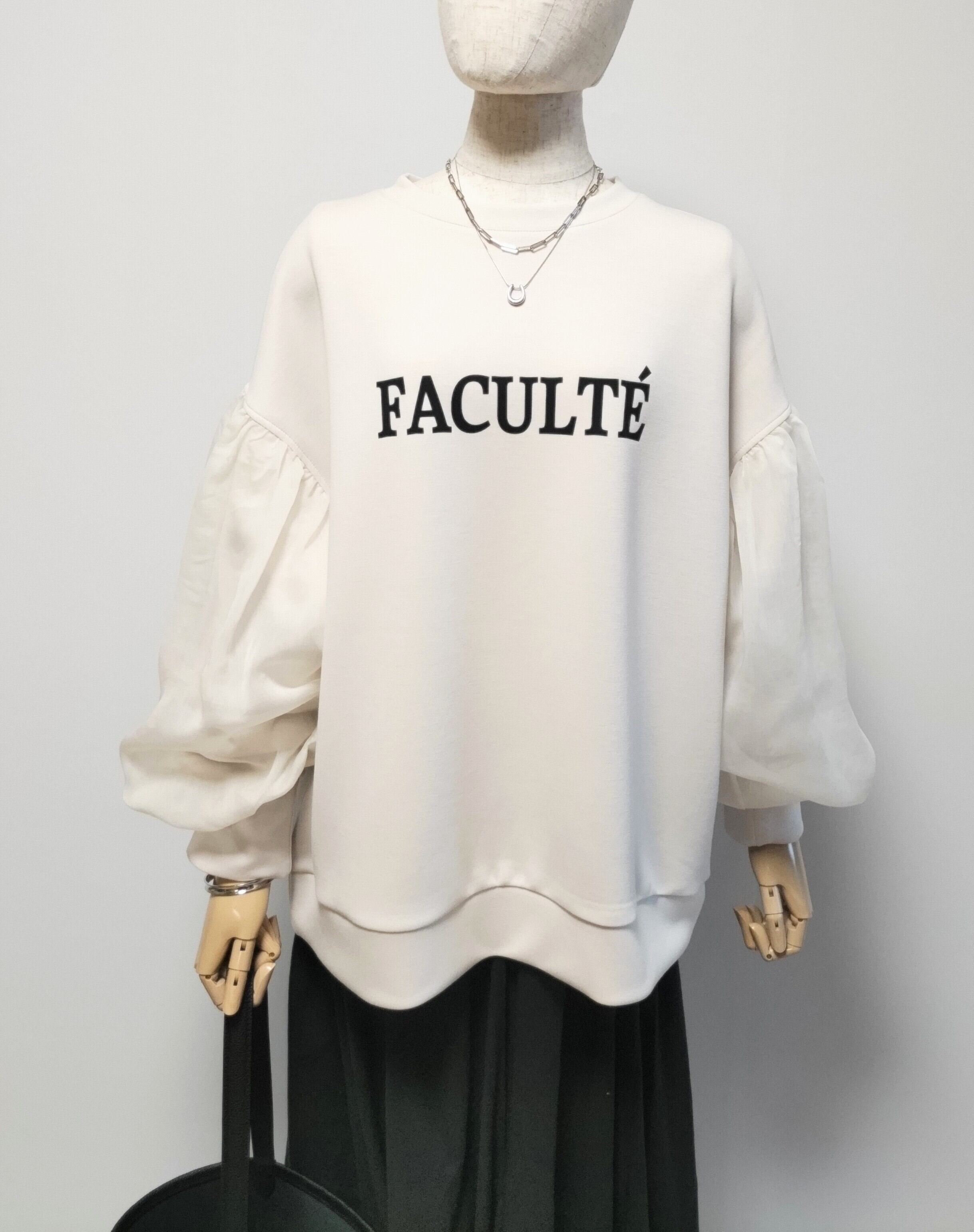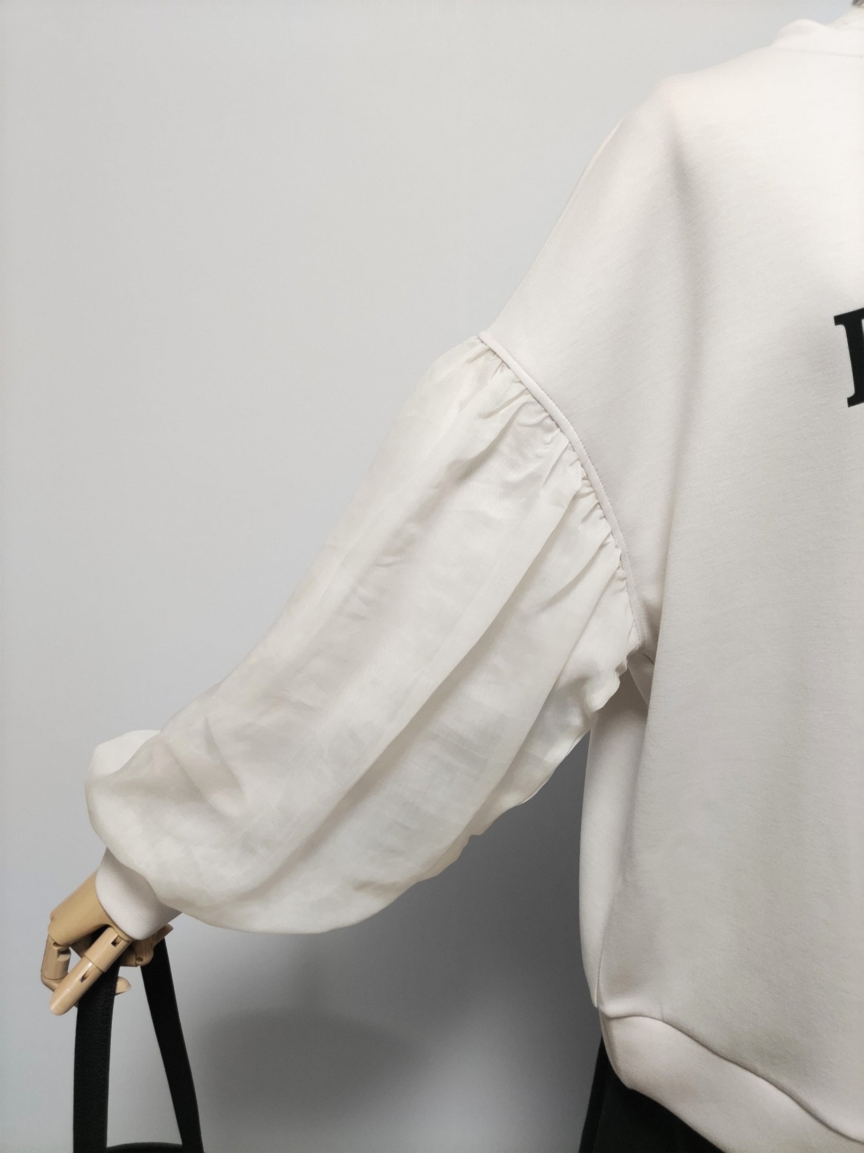 オーガンジーのボリュームスリーブが可愛いプルオーバー。