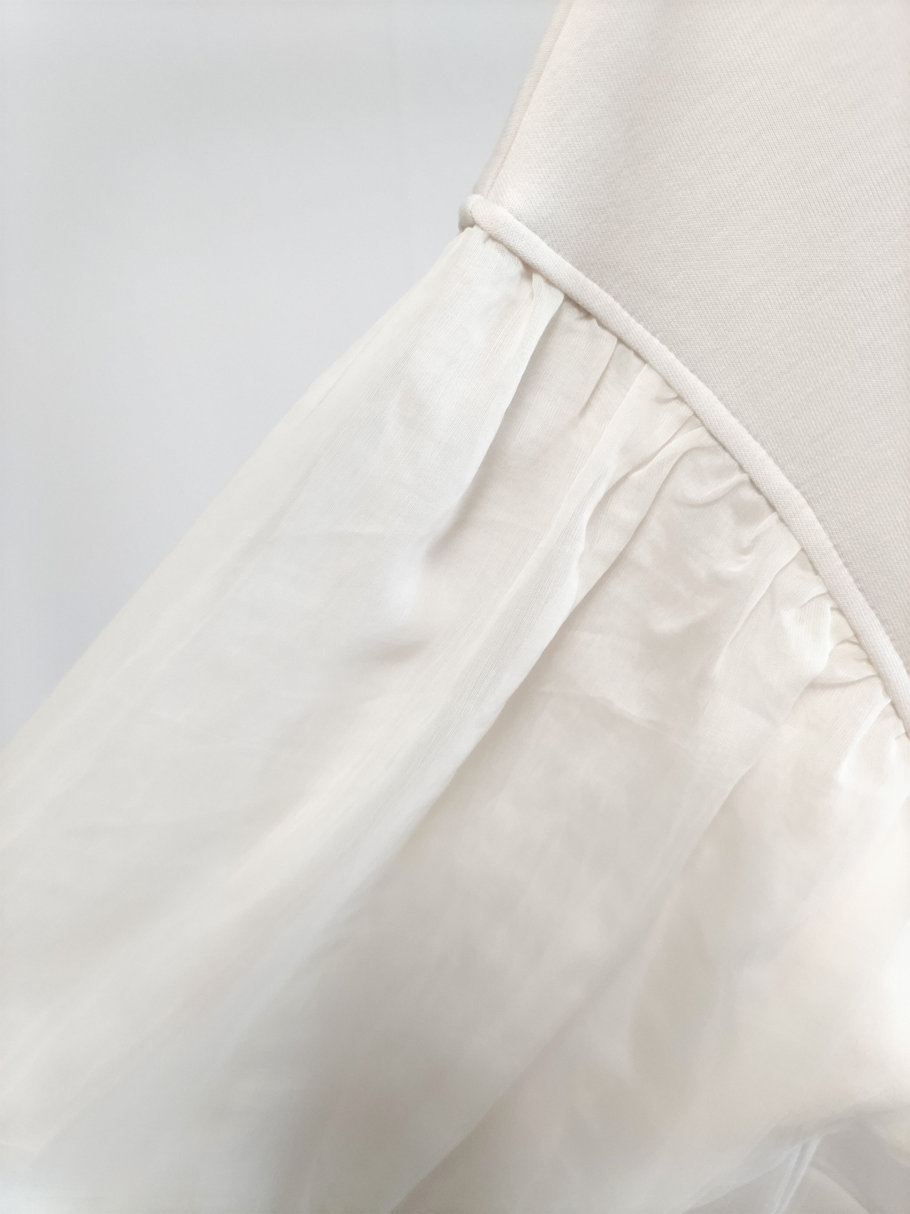 上品なオーガンジーにロゴプリントがカジュアル感をプラス。