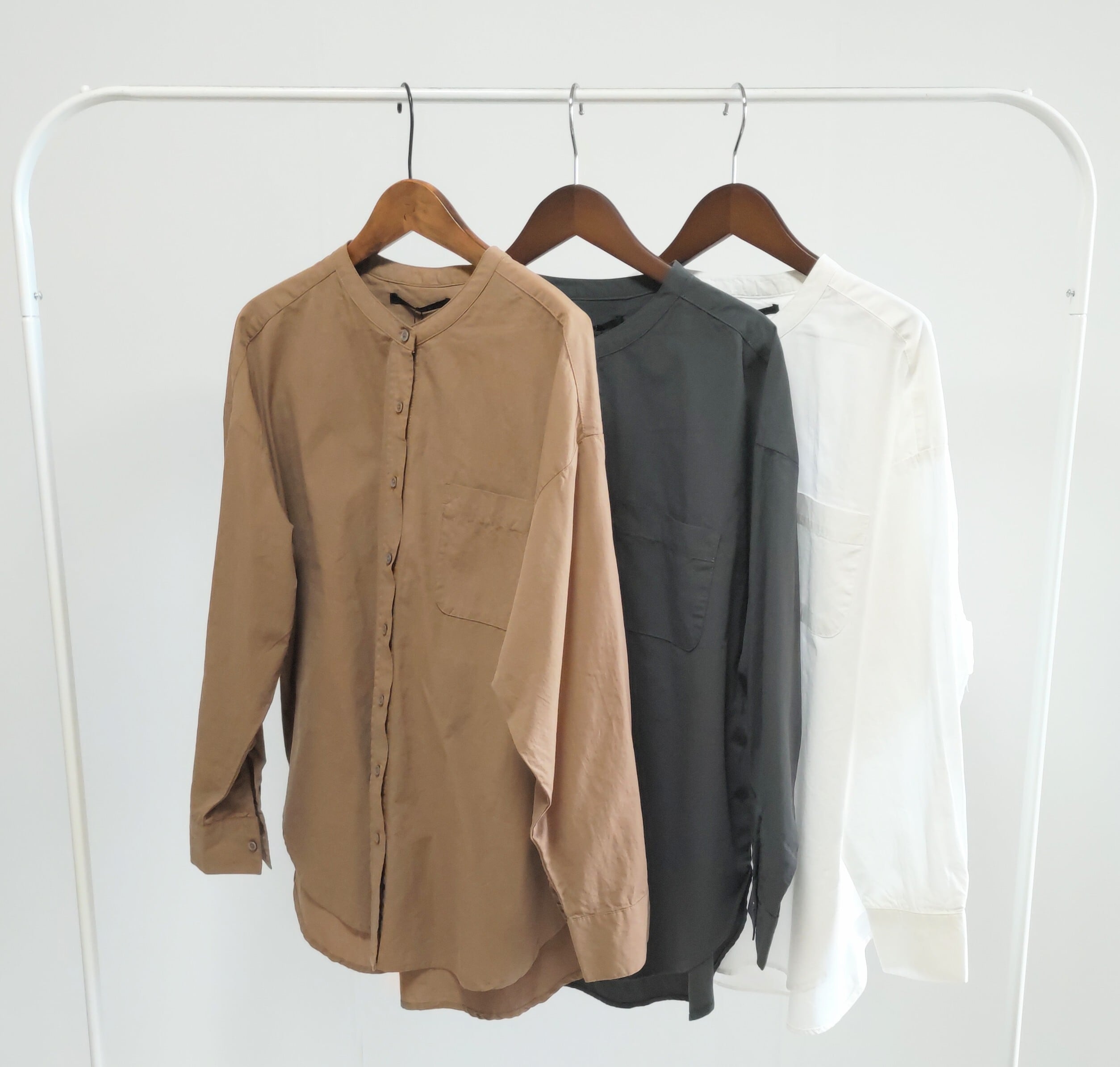 オーバサイズながらカジュアルになりすぎない絶妙なシルエットが人気のブラウス。